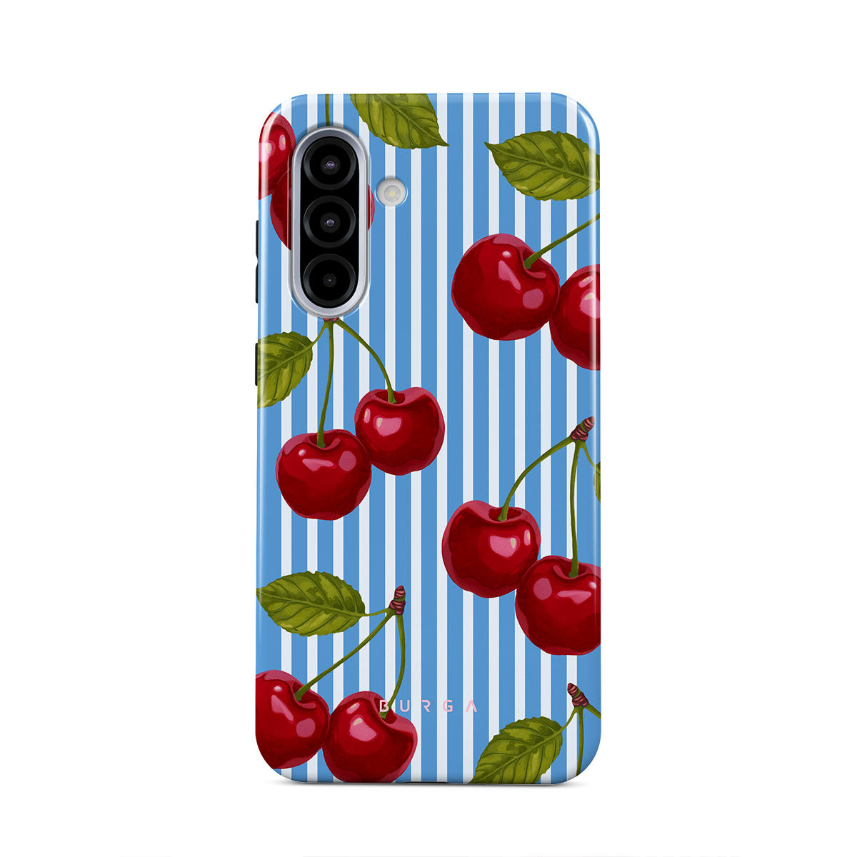Cherries dangle like earrings from blue skies, a fun reminder of that first bite of summer, juicy and bursting with laughter. Meet our Sweet Moment Samsung Galaxy A56 5G phone case design.