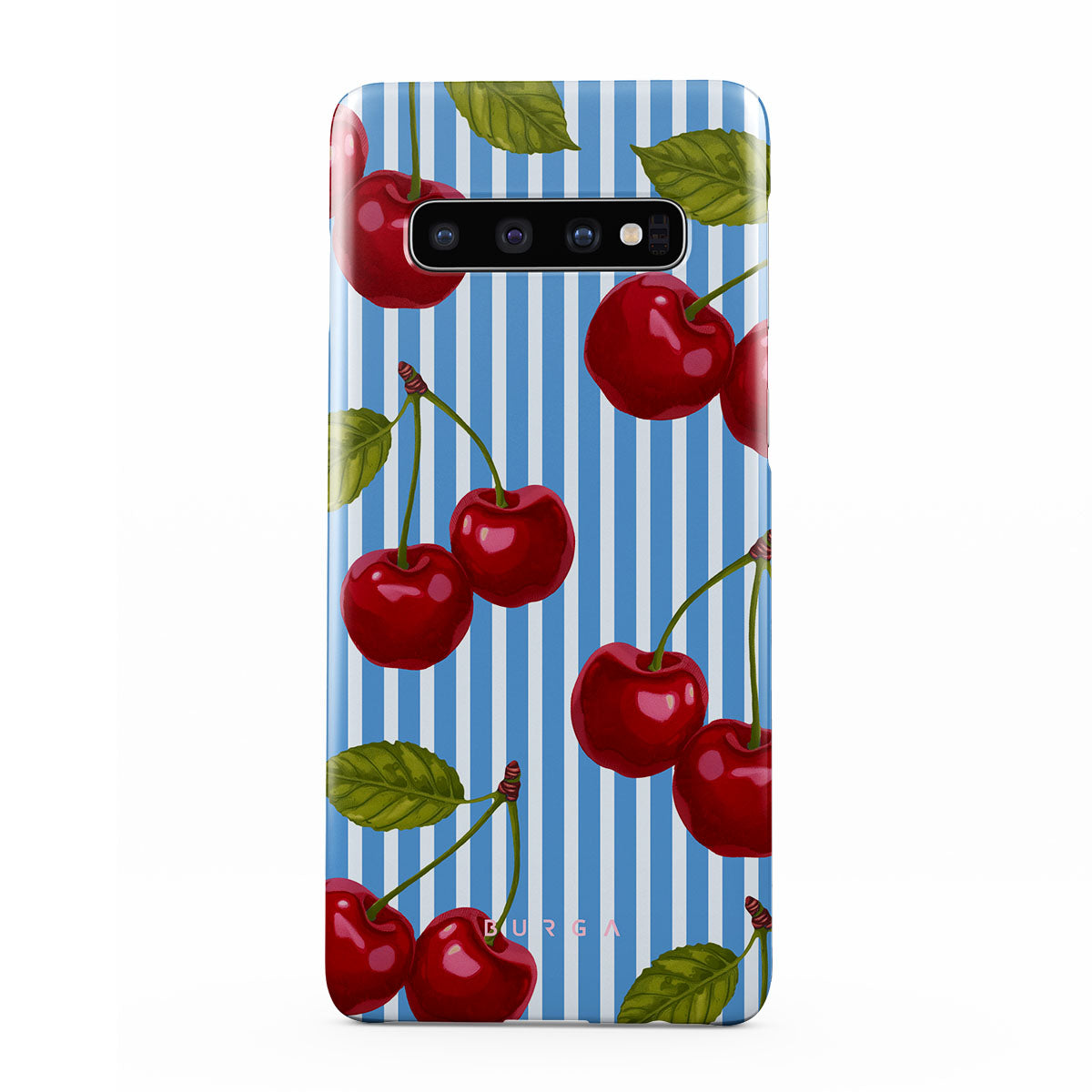Cherries dangle like earrings from blue skies, a fun reminder of that first bite of summer, juicy and bursting with laughter. Meet our Sweet Moment Samsung Galaxy S10 Plus phone case design.