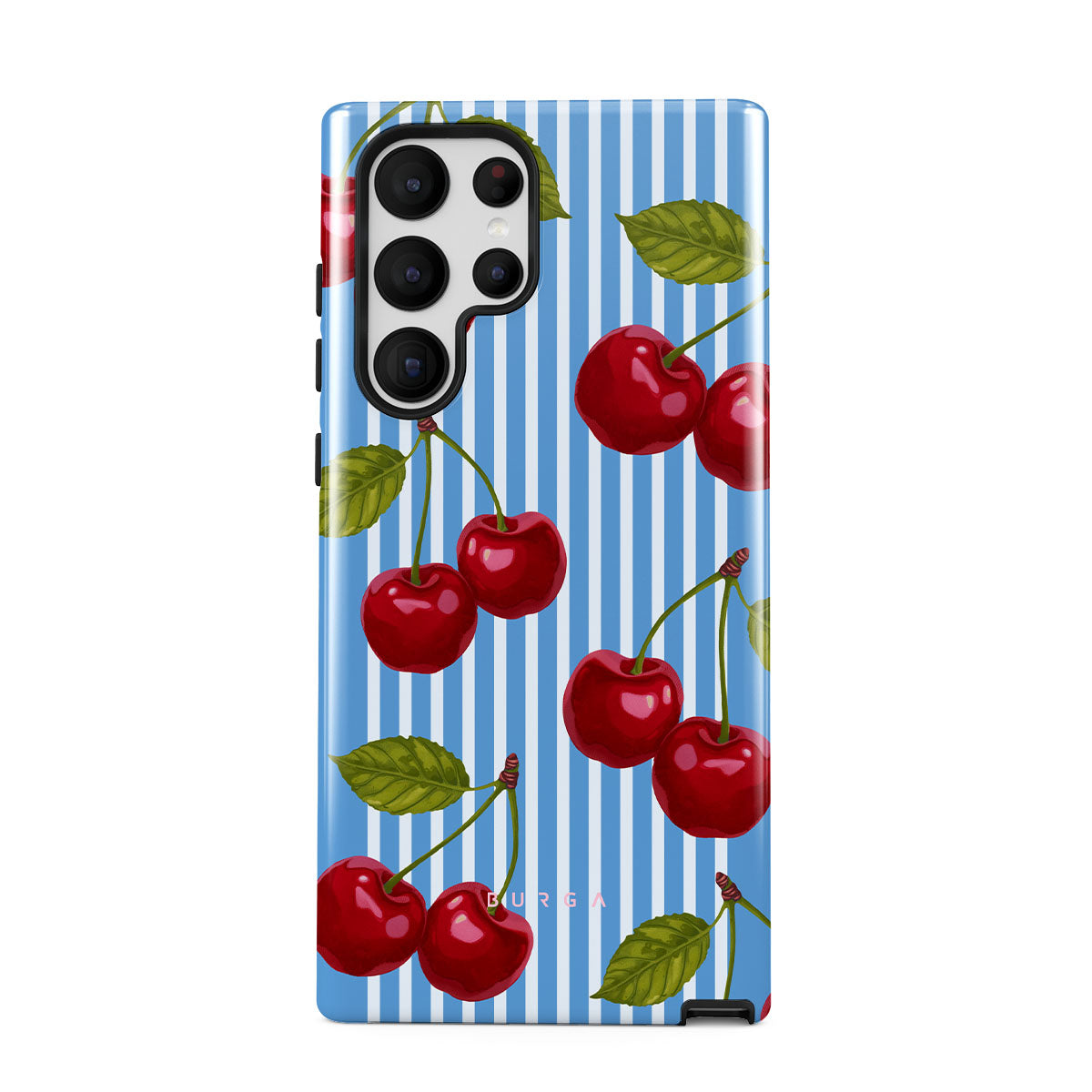 Cherries dangle like earrings from blue skies, a fun reminder of that first bite of summer, juicy and bursting with laughter. Meet our Sweet Moment Samsung Galaxy S22 Ultra phone case design.