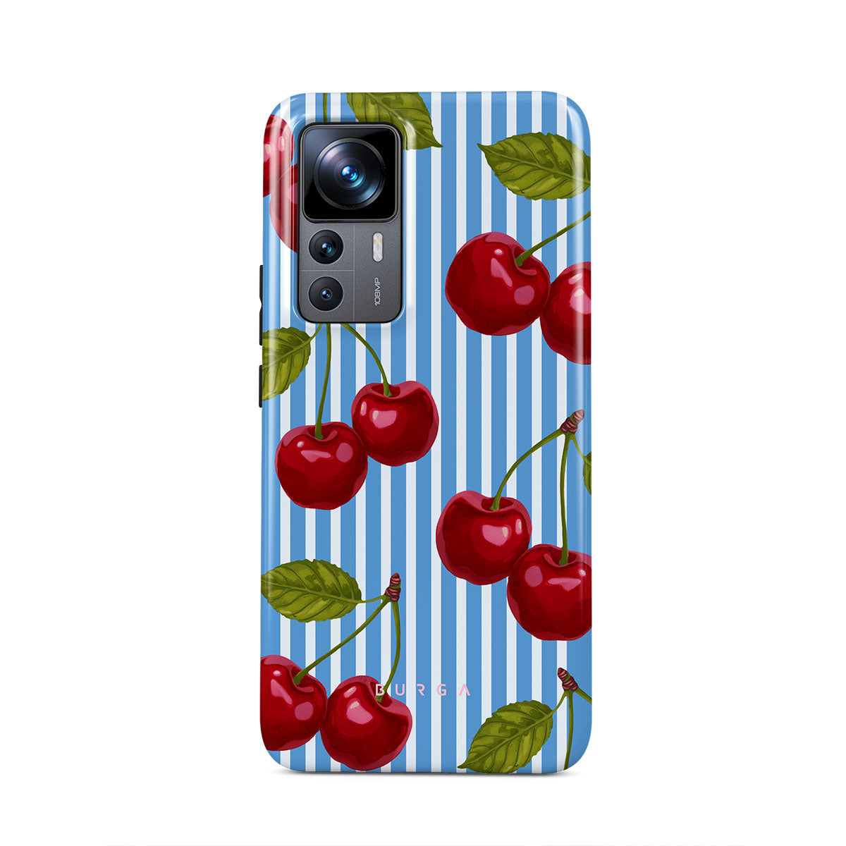 Cherries dangle like earrings from blue skies, a fun reminder of that first bite of summer, juicy and bursting with laughter. Meet our Sweet Moment Xiaomi 12T Pro phone case design.