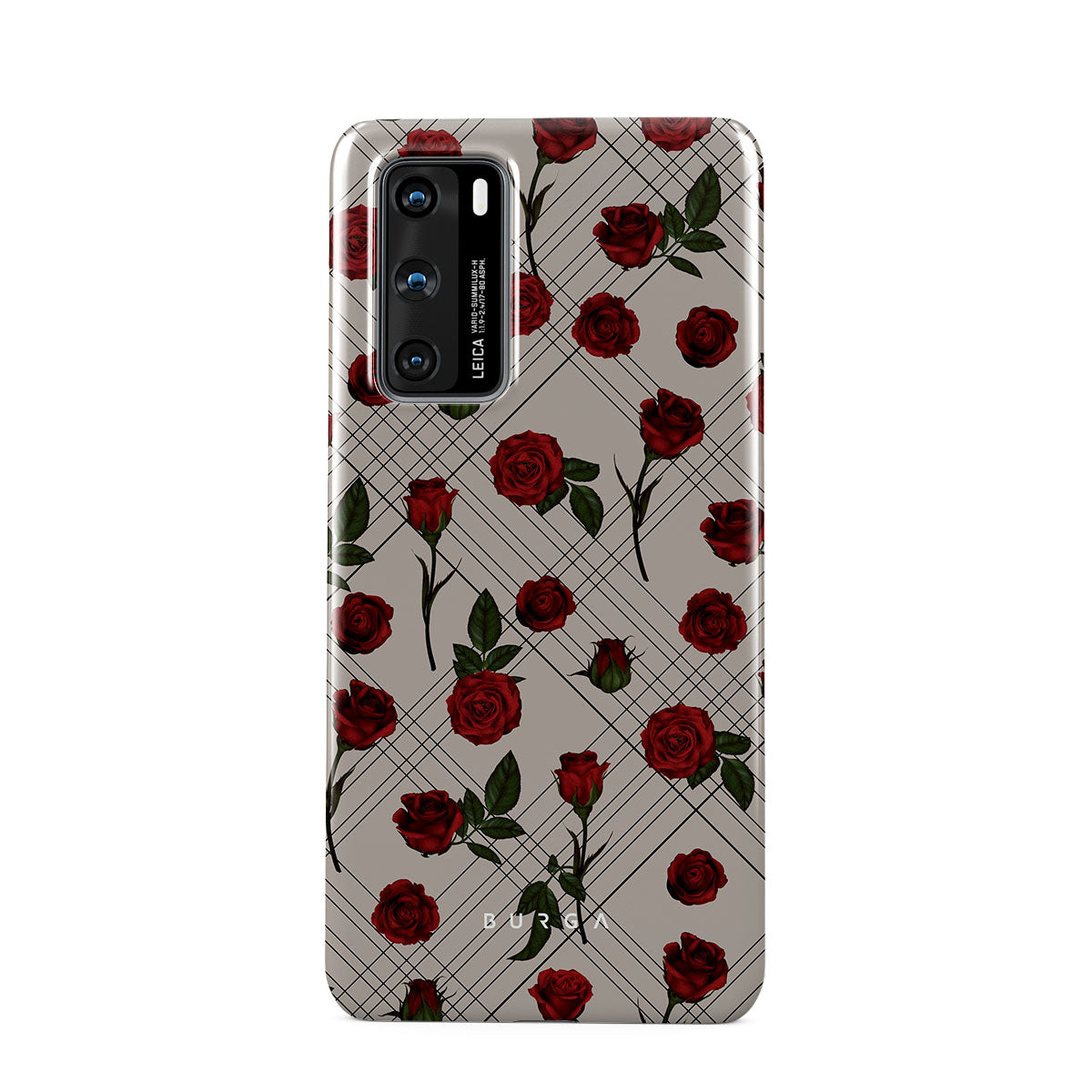Embrace the subtle rebellion of our Sweet Sin Huawei P40 phone case design. On a muted nude-gray canvas, scattered small red roses hint at passions hidden beneath the surface. A design that balances the delicate with the daring. Crafted for those who find beauty in the unexpected and wear their edge with elegance.