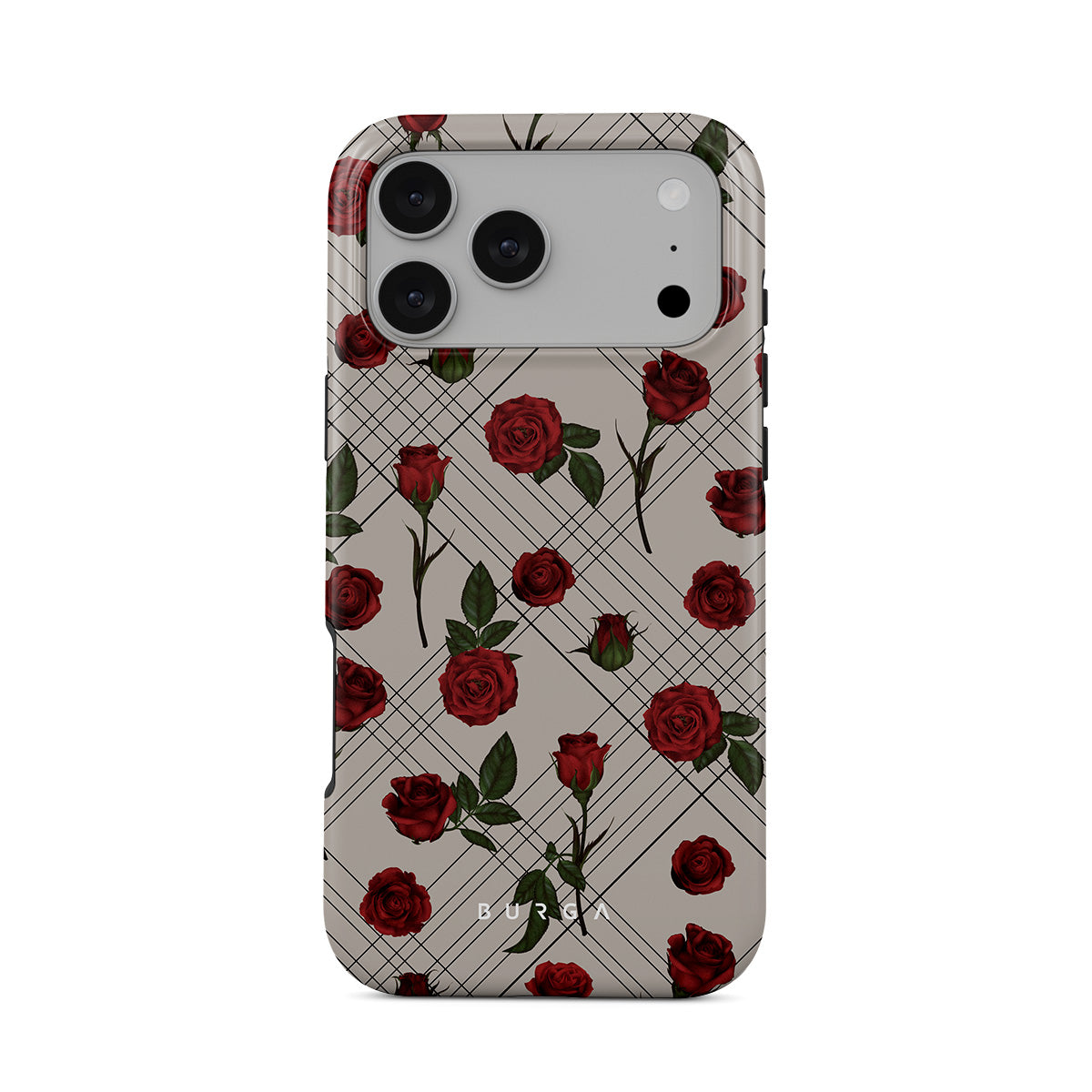 Embrace the subtle rebellion of our Sweet Sin iPhone 17 Pro Max phone case design. On a muted nude-gray canvas, scattered small red roses hint at passions hidden beneath the surface. A design that balances the delicate with the daring. Crafted for those who find beauty in the unexpected and wear their edge with elegance.