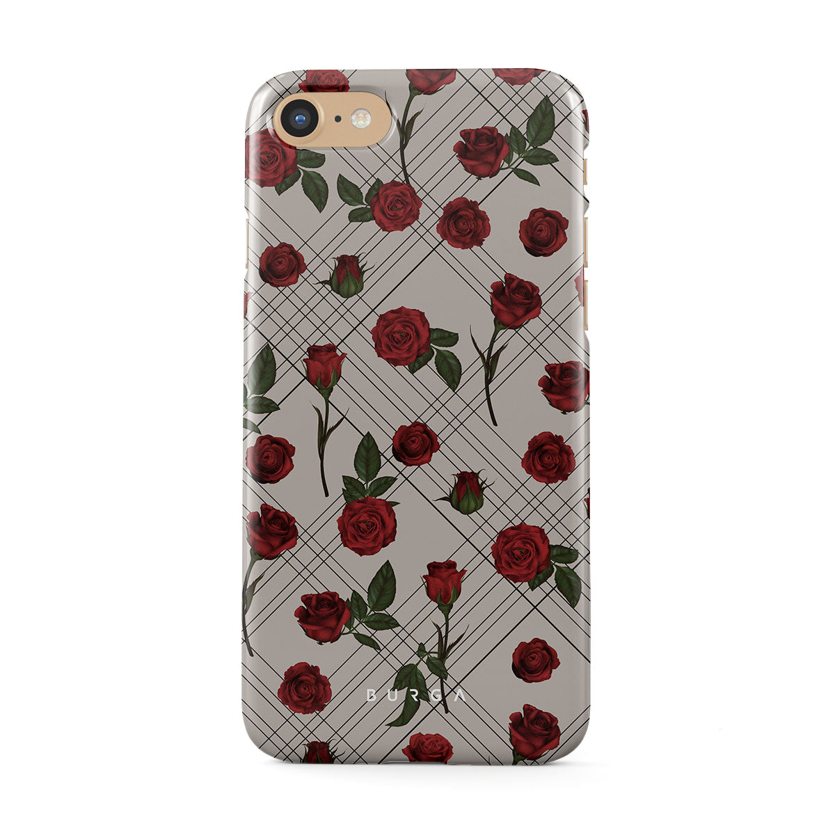 Embrace the subtle rebellion of our Sweet Sin iPhone SE (2020) phone case design. On a muted nude-gray canvas, scattered small red roses hint at passions hidden beneath the surface. A design that balances the delicate with the daring. Crafted for those who find beauty in the unexpected and wear their edge with elegance.