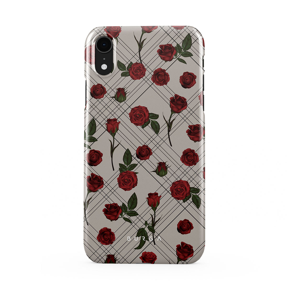 Embrace the subtle rebellion of our Sweet Sin iPhone XR phone case design. On a muted nude-gray canvas, scattered small red roses hint at passions hidden beneath the surface. A design that balances the delicate with the daring. Crafted for those who find beauty in the unexpected and wear their edge with elegance.