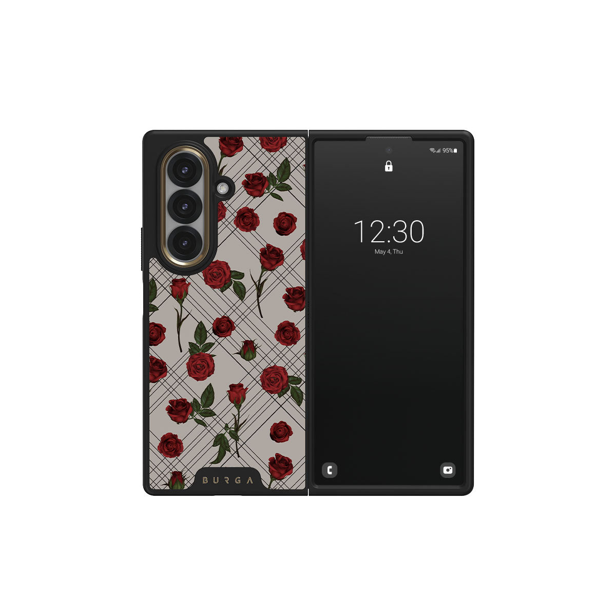 Embrace the subtle rebellion of our Sweet Sin Samsung Galaxy Z Fold 7 phone case design. On a muted nude-gray canvas, scattered small red roses hint at passions hidden beneath the surface. A design that balances the delicate with the daring. Crafted for those who find beauty in the unexpected and wear their edge with elegance.