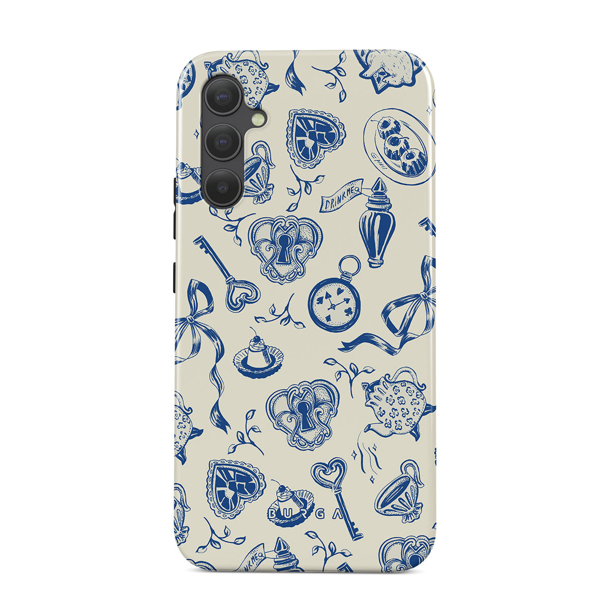 The Tea Party Samsung Galaxy A34 phone case design is a porcelain puzzle—ribbons tangled, time warped, rules rewritten. Sit down, pour a cup, but don’t expect things to make sense. They never do.