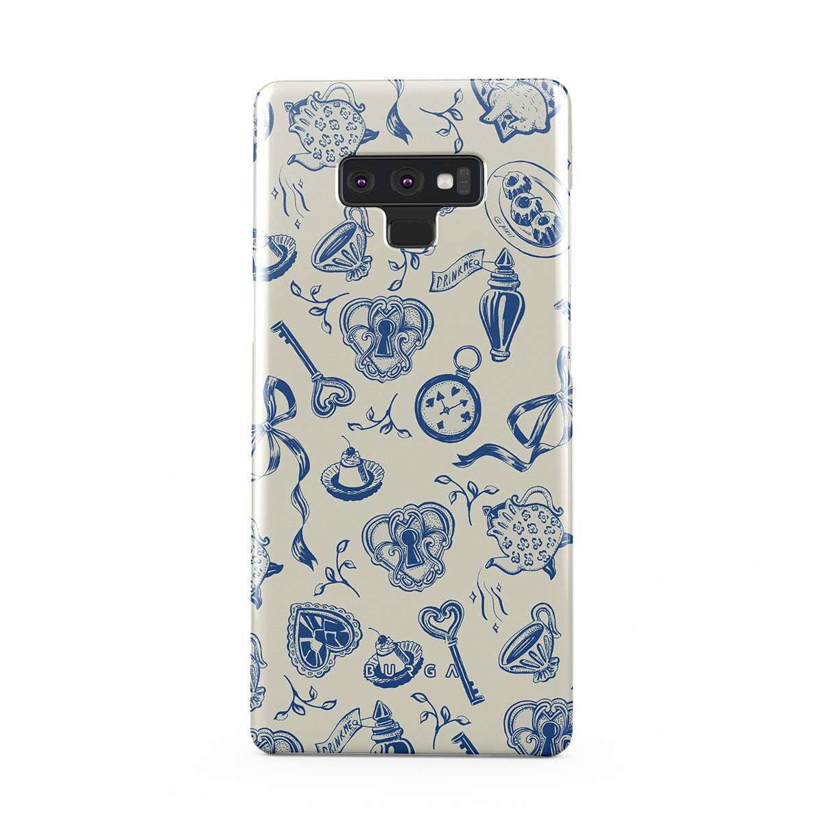 The Tea Party Samsung Galaxy Note 9 phone case design is a porcelain puzzle—ribbons tangled, time warped, rules rewritten. Sit down, pour a cup, but don’t expect things to make sense. They never do.