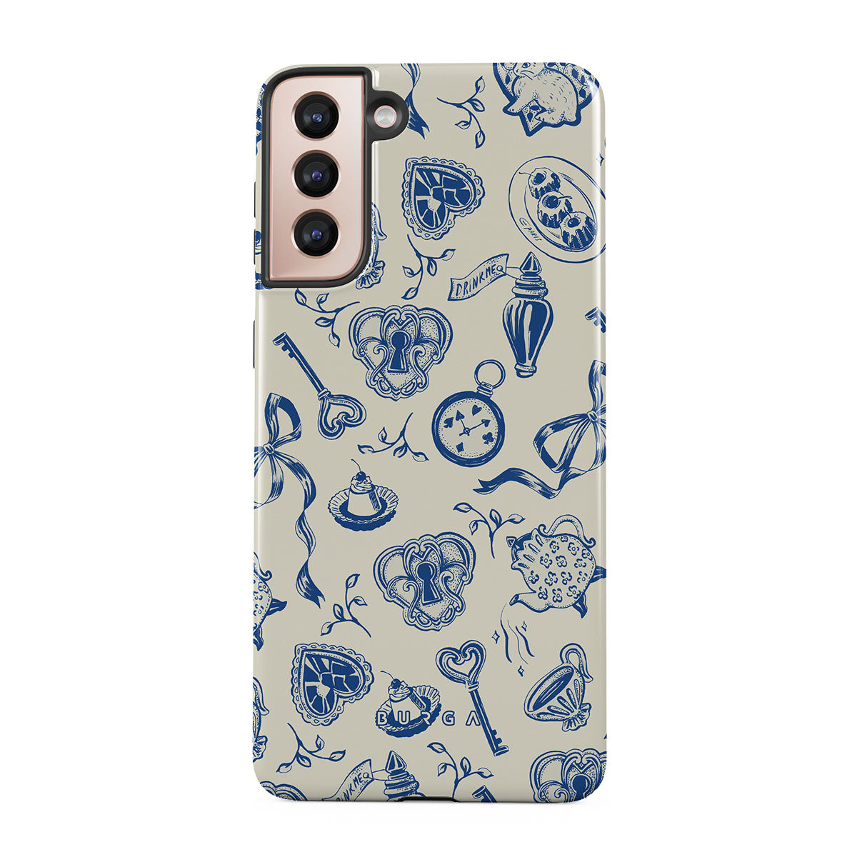 The Tea Party Samsung Galaxy S21 Plus phone case design is a porcelain puzzle—ribbons tangled, time warped, rules rewritten. Sit down, pour a cup, but don’t expect things to make sense. They never do.