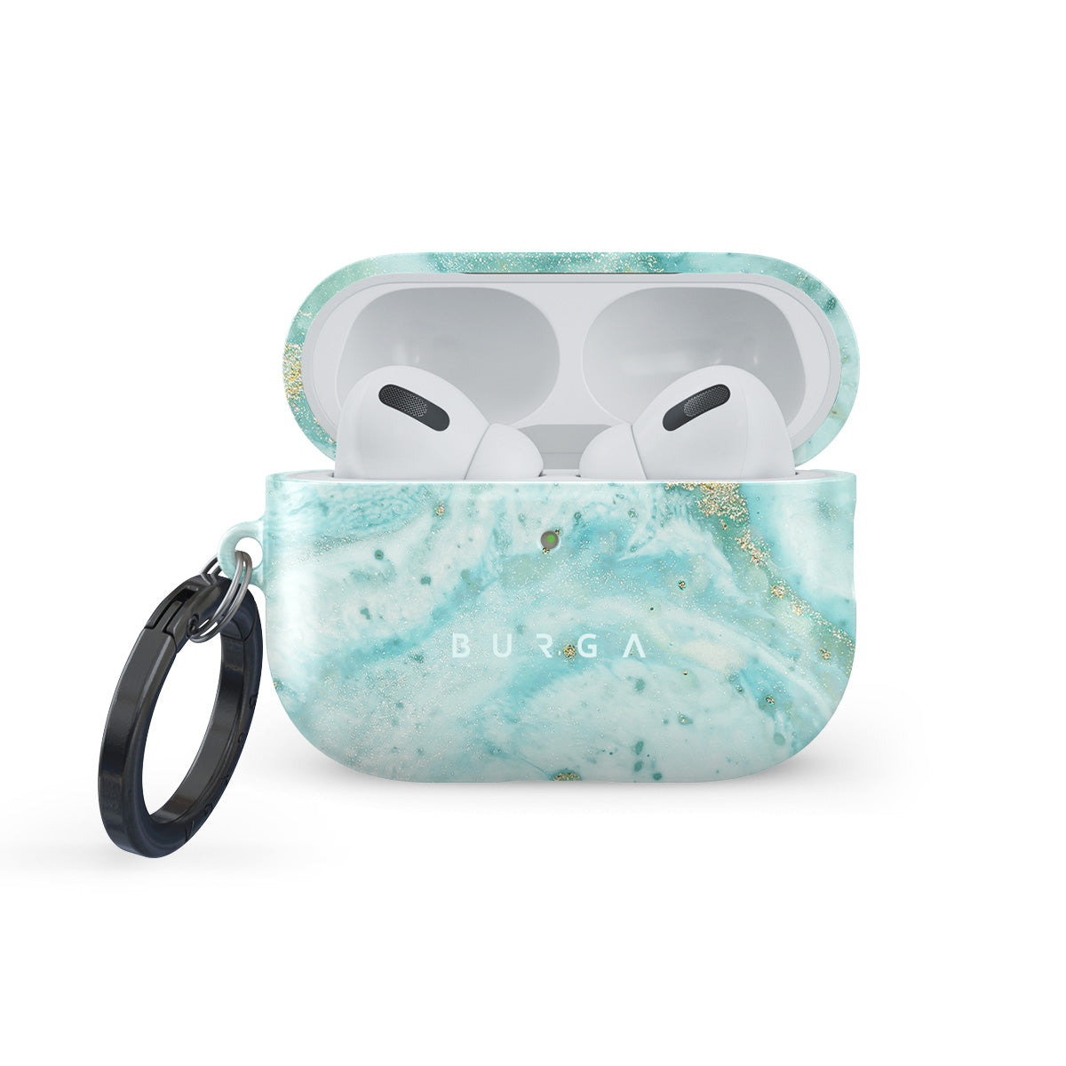 The Uluwatu Waves Apple AirPods Pro 3 case cover features a teal marble pattern enriched with golden color specks that will surely remind you of tropical beach and teal water while offering complete coverage protection and becoming a best friend for your AirPods Pro 3 case Our case fits perfectly snug around Apple AirPods Pro 3 . “Like a glove!” one might say. And it won’t disrupt the wireless charging capabilities of the newer model. There’s even an LED light indicator to prove it (don’t worry, wired charging still works, too). When fitted, the BURGA case will protect the delicate Apple AirPods Pro 3 case beneath it from scratches, bumps, and drops while remaining scratch-free itself. Our signature design pattern prints are High Quality, and will never peel or fade away- thanks to our unique printing technology. And finally, a handy carabiner is there to make your life easier and more convenient: just snap it around your keys or belt loop and tackle the day head-on. Your music is right there by your side when you need it.