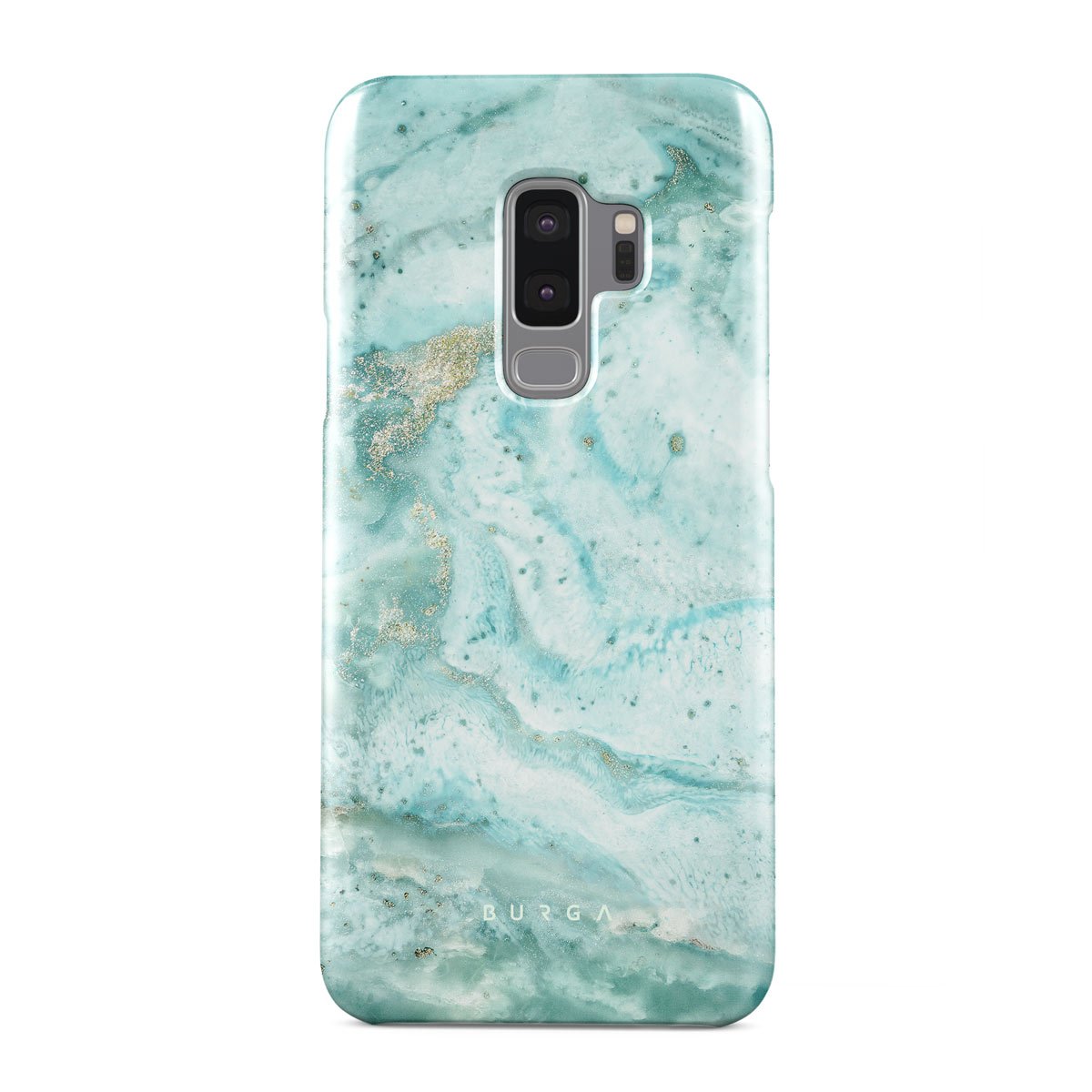 Our Uluwatu Waves Samsung Galaxy S9 Plus phone case is an absolute teal dream. This phone cover features timeless and soft blue marble pattern enriched with golden color specks will surely remind you of a tropical beach teal waters while becoming a protective best friend for your cell phone.