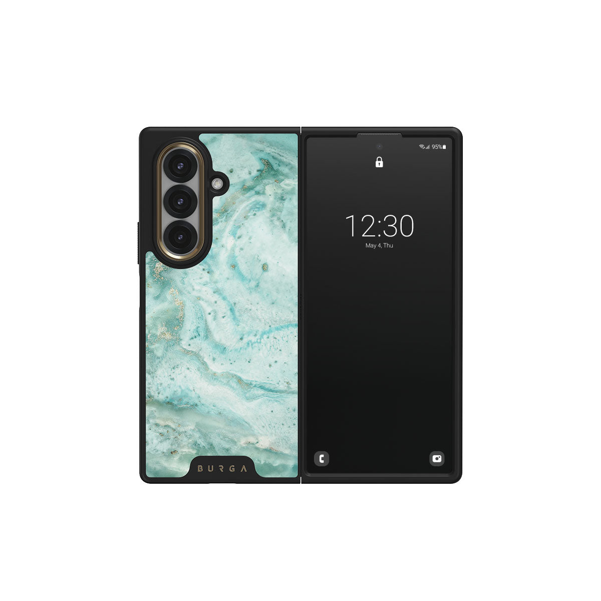 Our Uluwatu Waves Samsung Galaxy Z Fold 7 phone case is an absolute teal dream. This phone cover features timeless and soft blue marble pattern enriched with golden color specks will surely remind you of a tropical beach teal waters while becoming a protective best friend for your cell phone.