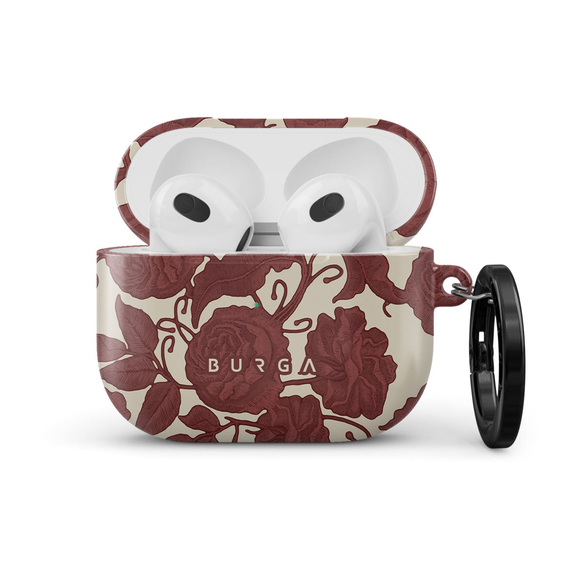 Cherries dangle like earrings from blue skies, a fun reminder of that first bite of summer, juicy and bursting with laughter. Meet our Sweet Moment AirPods 3 case cover design.