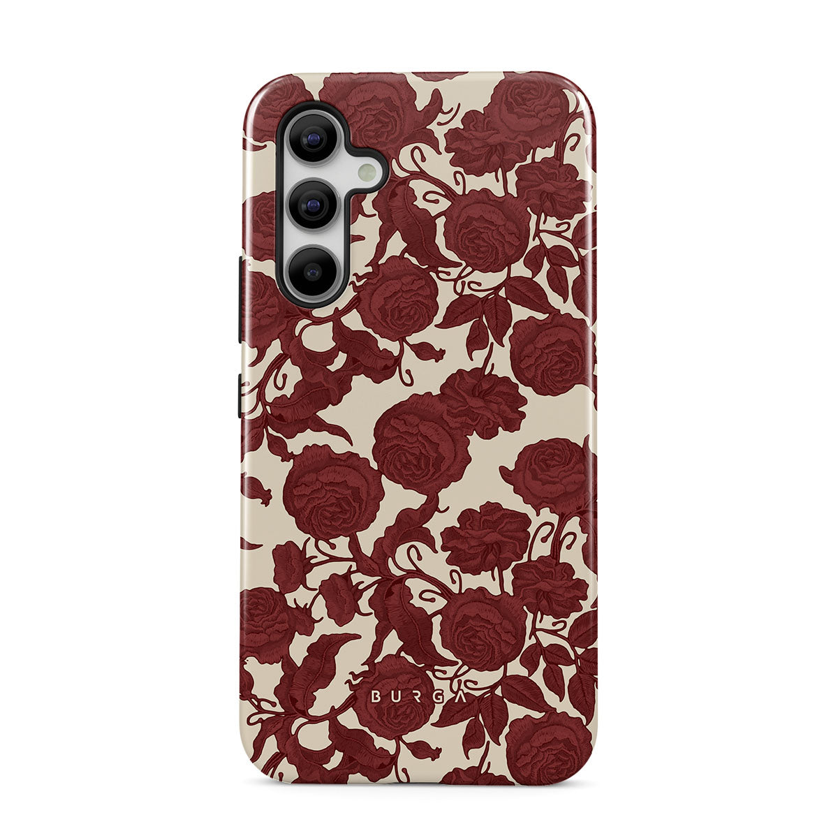 This design features: dark red roses, intricate floral pattern, vintage pattern