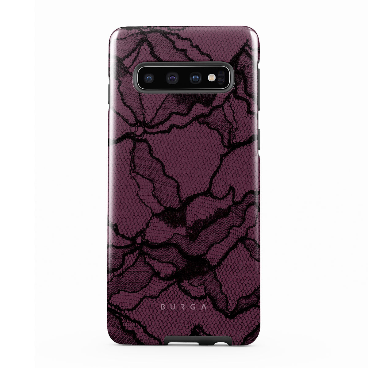This design, reminiscent of a fragment of a vintage lace dress, captivates and invites touch. It’s perfect for the woman who commands attention with just a glance. With this Samsung Galaxy S10 4G phone case design, every day is your stage, making you That Girl – the one who effortlessly blends mystery, boldness, and a flair of old-world charm into today's trends.