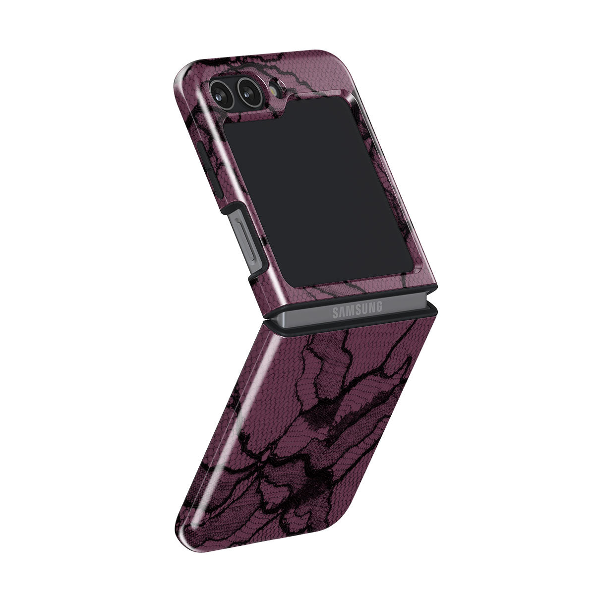 This design, reminiscent of a fragment of a vintage lace dress, captivates and invites touch. It’s perfect for the woman who commands attention with just a glance. With this Samsung Galaxy Z Flip 5 phone case design, every day is your stage, making you That Girl – the one who effortlessly blends mystery, boldness, and a flair of old-world charm into today's trends.