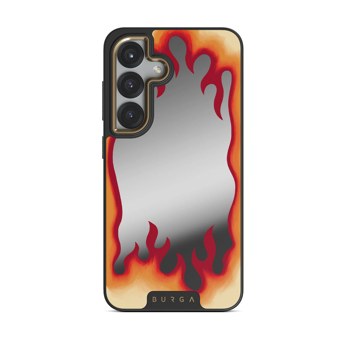 This design features: flames, fire, mirror
