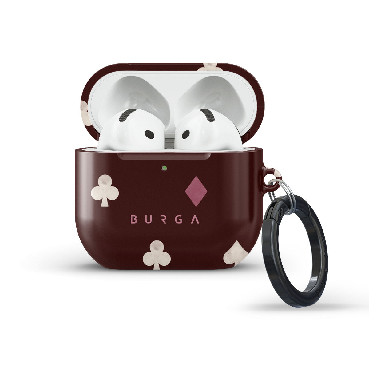 Nothing is as it appears. Hearts, clubs, diamonds, and spades—stacked in your favor or playing against you? This AirPods 4 case cover design features a rich burgundy background and minimalist suits that make for a game where the rules are constantly shifting.