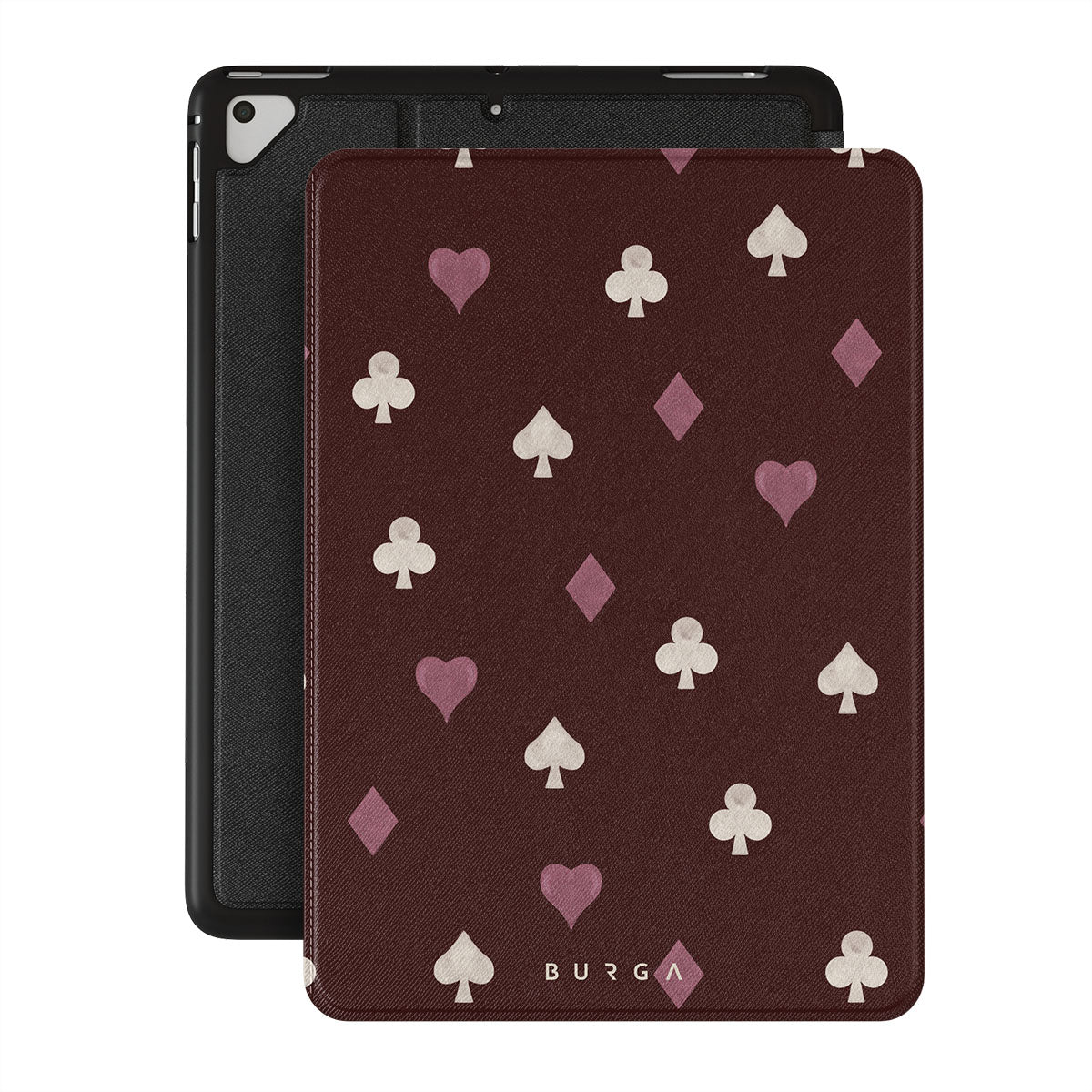 Nothing is as it appears. Hearts, clubs, diamonds, and spades—stacked in your favor or playing against you? This iPad 9.7 (6th/5th Gen) folio case design features a rich burgundy background and minimalist suits that make for a game where the rules are constantly shifting.