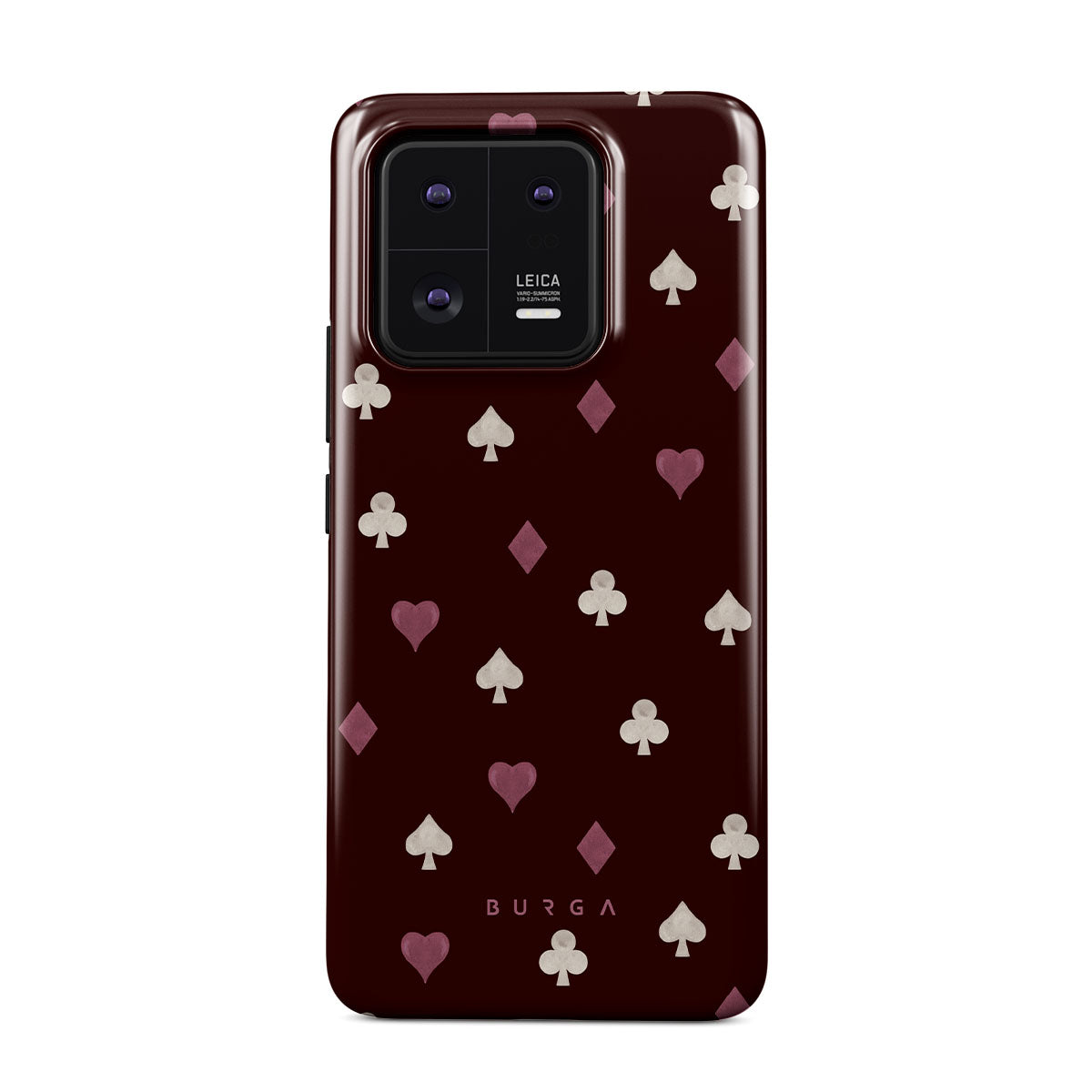 Nothing is as it appears. Hearts, clubs, diamonds, and spades—stacked in your favor or playing against you? This Xiaomi 13 Pro phone case design features a rich burgundy background and minimalist suits that make for a game where the rules are constantly shifting.