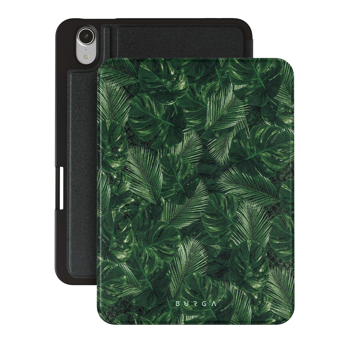 Enter the World of Jungles with our Tropical Garden iPad Mini 8.3 (A17 Pro/6th Gen) folio case cover showcasing mesmerizing greens. Palm fronds and Monstera leaves' unique patterns will add a tropical touch to your wardrobe while offering heavy-duty protection to your iPad.