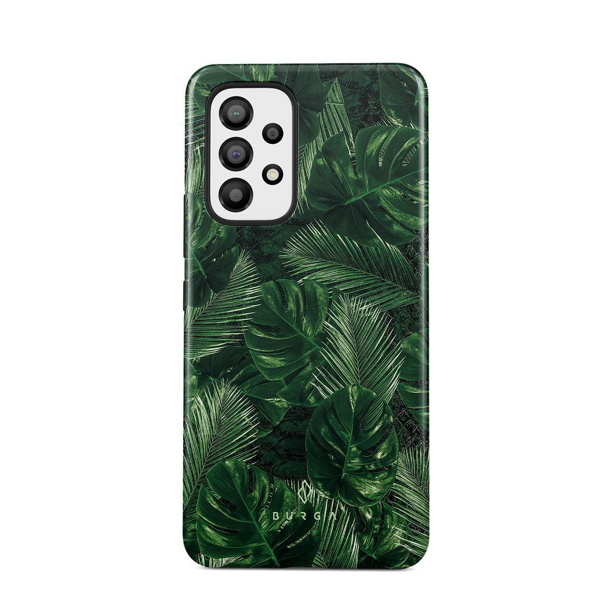 Enter the World of Jungles with our Tropical Garden Samsung Galaxy A33 phone case cover showcasing mesmerizing greens. Palm fronds and Monstera leaves' unique patterns will add a tropical touch to your wardrobe while offering heavy-duty protection to your phone.