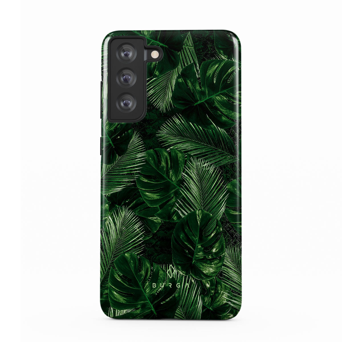Enter the World of Jungles with our Tropical Garden Samsung Galaxy S21 FE phone case cover showcasing mesmerizing greens. Palm fronds and Monstera leaves' unique patterns will add a tropical touch to your wardrobe while offering heavy-duty protection to your phone.