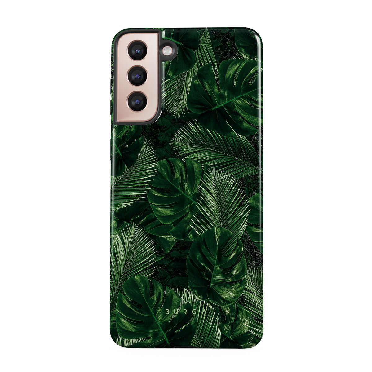 Enter the World of Jungles with our Tropical Garden Samsung Galaxy S21 Plus phone case cover showcasing mesmerizing greens. Palm fronds and Monstera leaves' unique patterns will add a tropical touch to your wardrobe while offering heavy-duty protection to your phone.