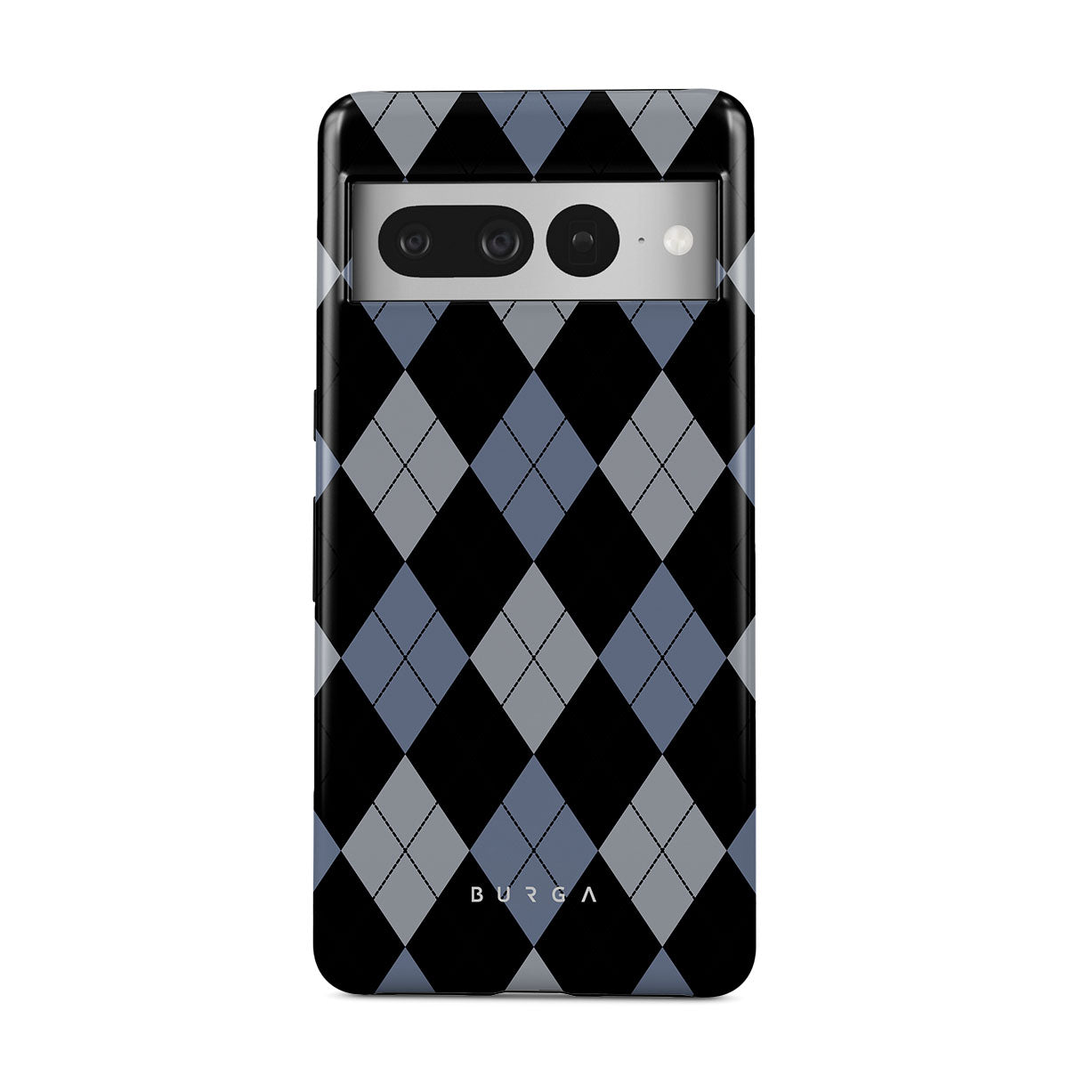Discover our Trouble Google Pixel 7 Pro phone case design—a classic argyle pattern featuring stark black diamonds that seamlessly blend with two distinct shades of blue. Made for those who respect the classics but aren't afraid to disrupt the norm.