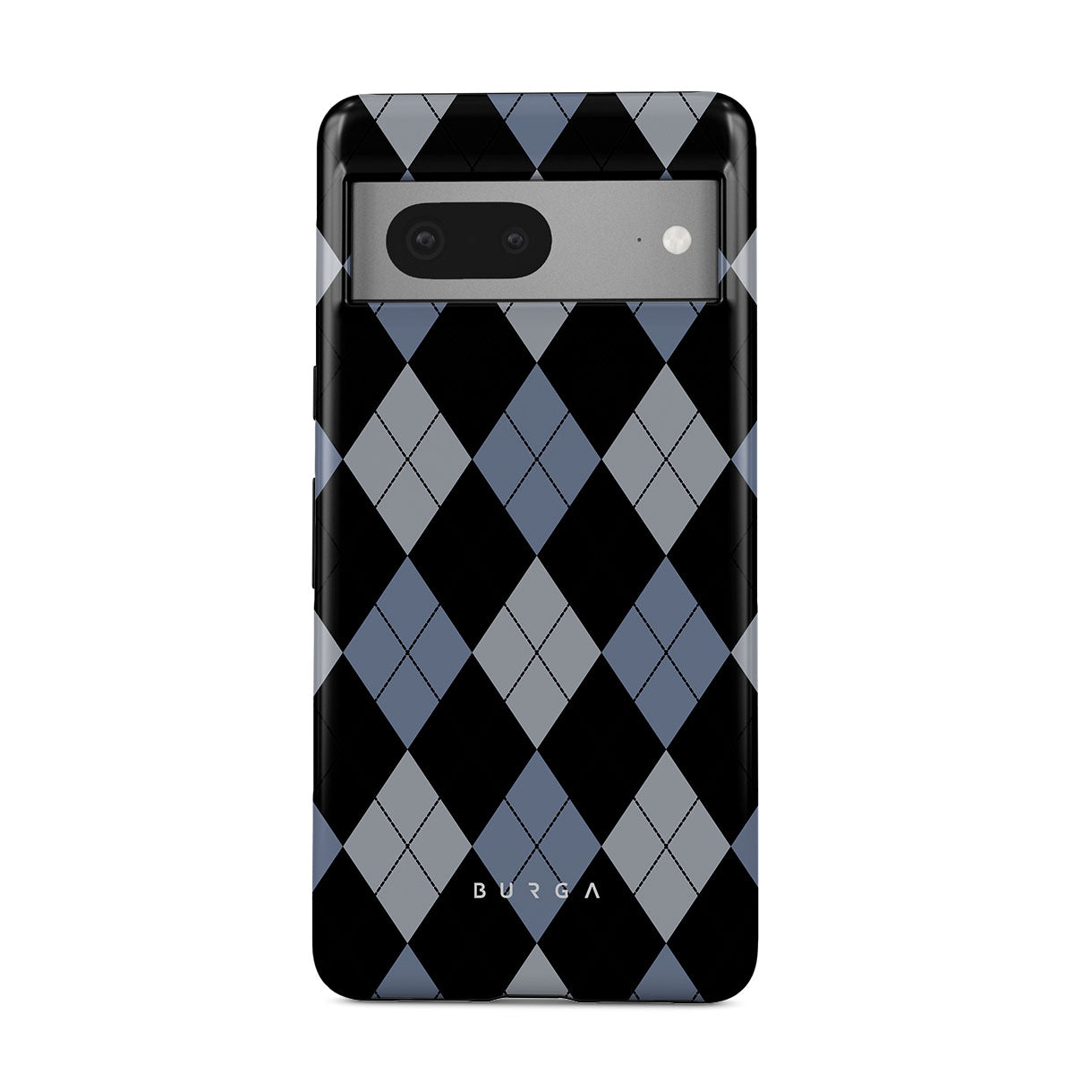 Discover our Trouble Google Pixel 7a phone case design—a classic argyle pattern featuring stark black diamonds that seamlessly blend with two distinct shades of blue. Made for those who respect the classics but aren't afraid to disrupt the norm.