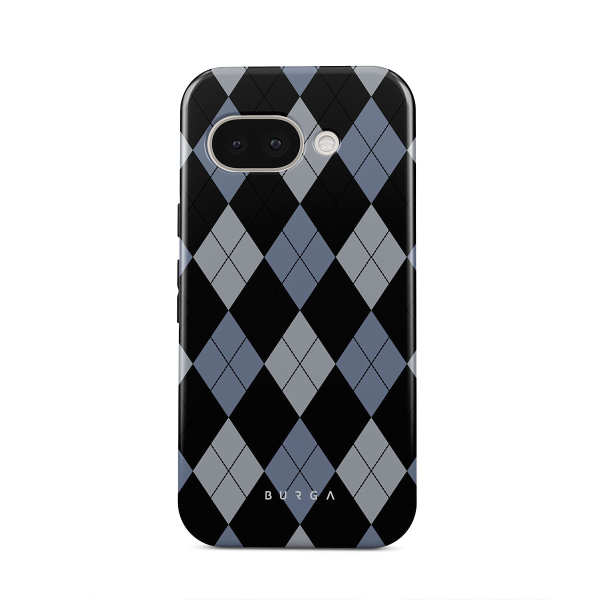 Discover our Trouble Google Pixel 9a phone case design—a classic argyle pattern featuring stark black diamonds that seamlessly blend with two distinct shades of blue. Made for those who respect the classics but aren't afraid to disrupt the norm.