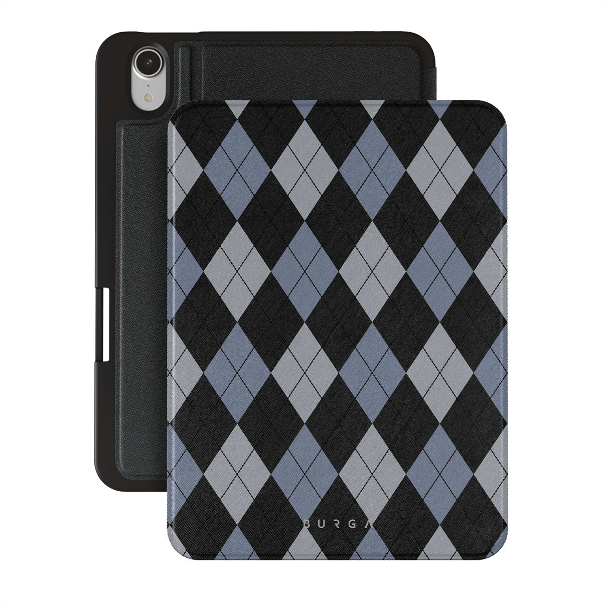 Discover our Trouble iPad Mini 8.3 (A17 Pro/6th Gen) 2021 folio case design—a classic argyle pattern featuring stark black diamonds that seamlessly blend with two distinct shades of blue. Made for those who respect the classics but aren't afraid to disrupt the norm.