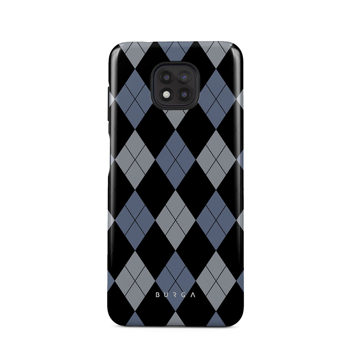 Discover our Trouble Motorola Moto G Power 2021 phone case design—a classic argyle pattern featuring stark black diamonds that seamlessly blend with two distinct shades of blue. Made for those who respect the classics but aren't afraid to disrupt the norm.