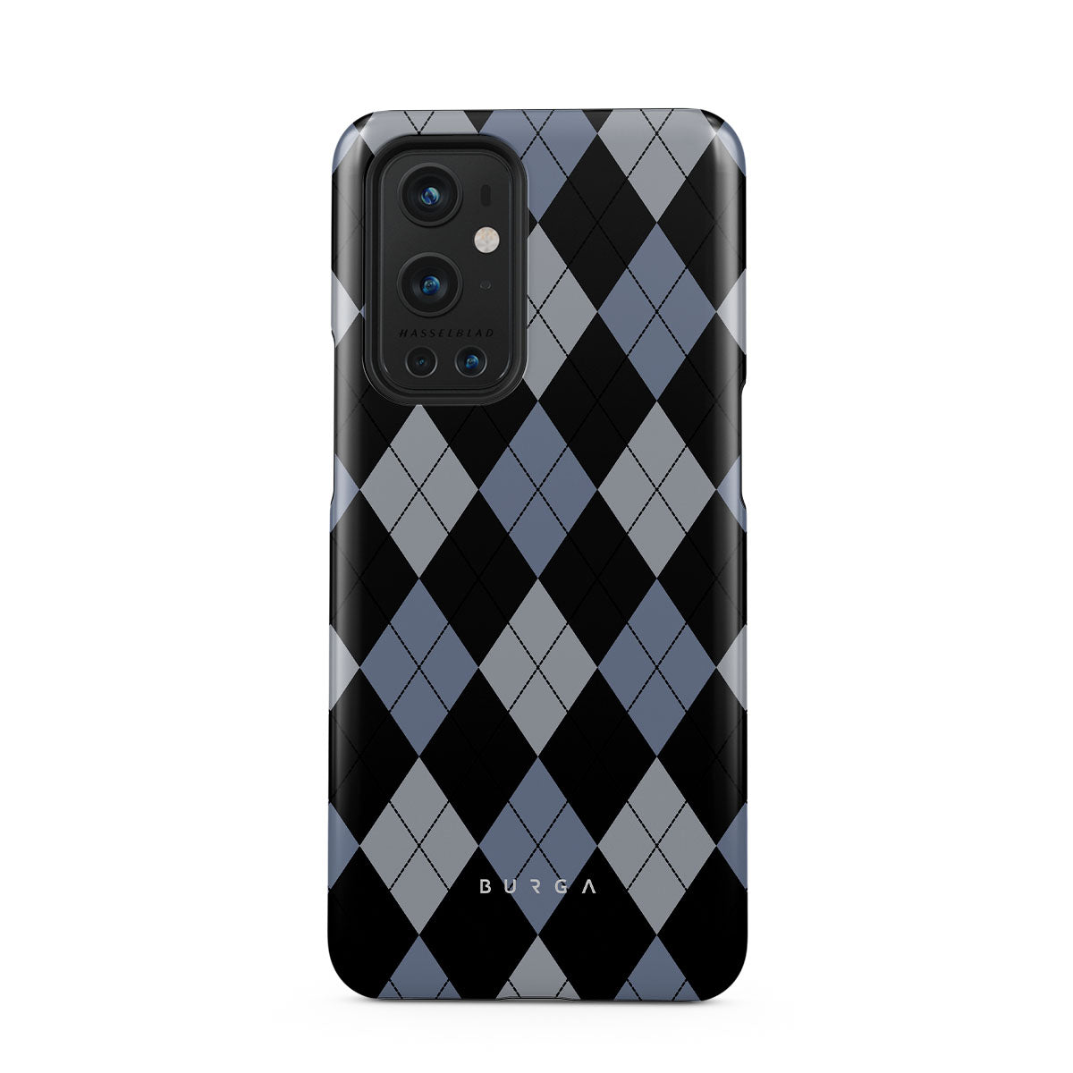 Discover our Trouble OnePlus 9 Pro phone case design—a classic argyle pattern featuring stark black diamonds that seamlessly blend with two distinct shades of blue. Made for those who respect the classics but aren't afraid to disrupt the norm.