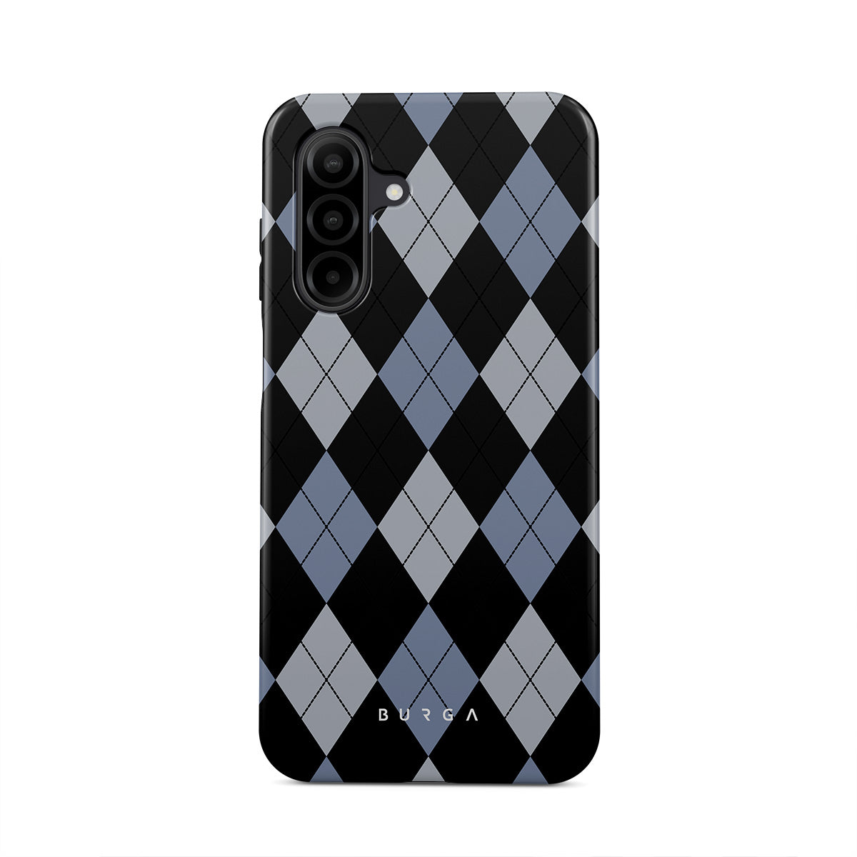 Discover our Trouble Samsung Galaxy A26 5G phone case design—a classic argyle pattern featuring stark black diamonds that seamlessly blend with two distinct shades of blue. Made for those who respect the classics but aren't afraid to disrupt the norm.