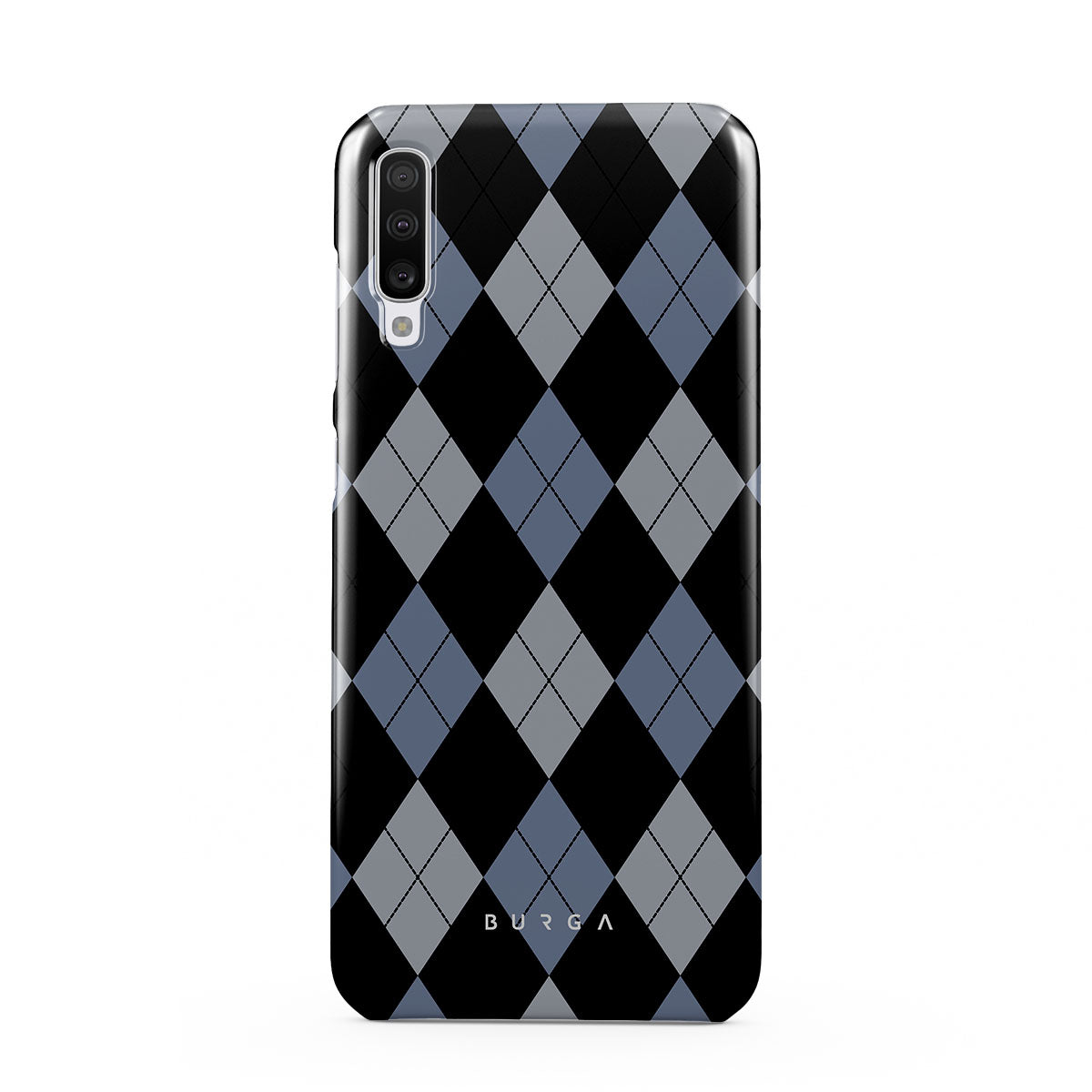 Discover our Trouble Samsung Galaxy A70 phone case design—a classic argyle pattern featuring stark black diamonds that seamlessly blend with two distinct shades of blue. Made for those who respect the classics but aren't afraid to disrupt the norm.
