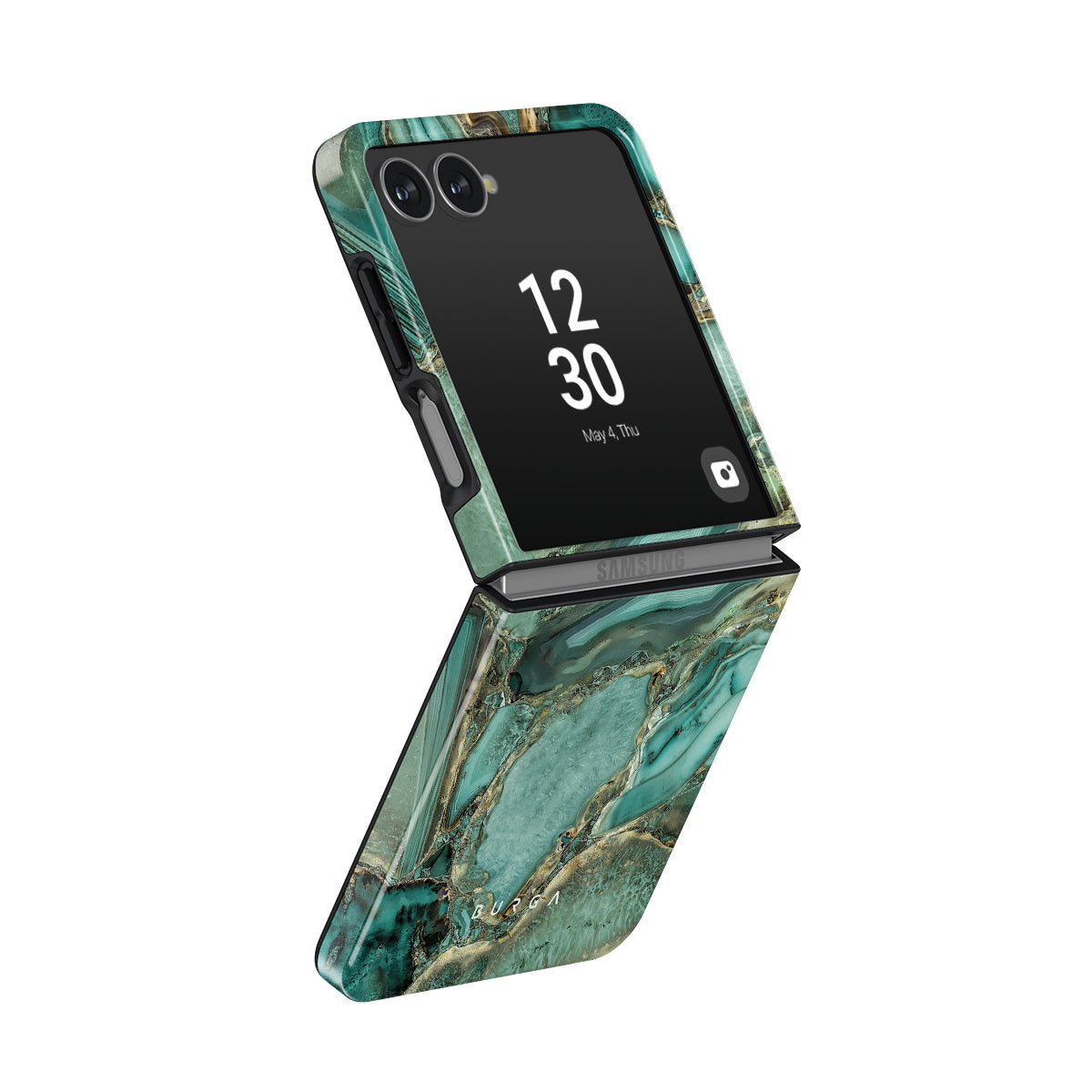 Marble meets geode look in our durable Ubud Jungle Samsung Galaxy Z Flip 7 phone case. You can rest sure that our stunning turquoise phone case will protect your device from any unexpected falls while adding a dreamy touch to your style.
