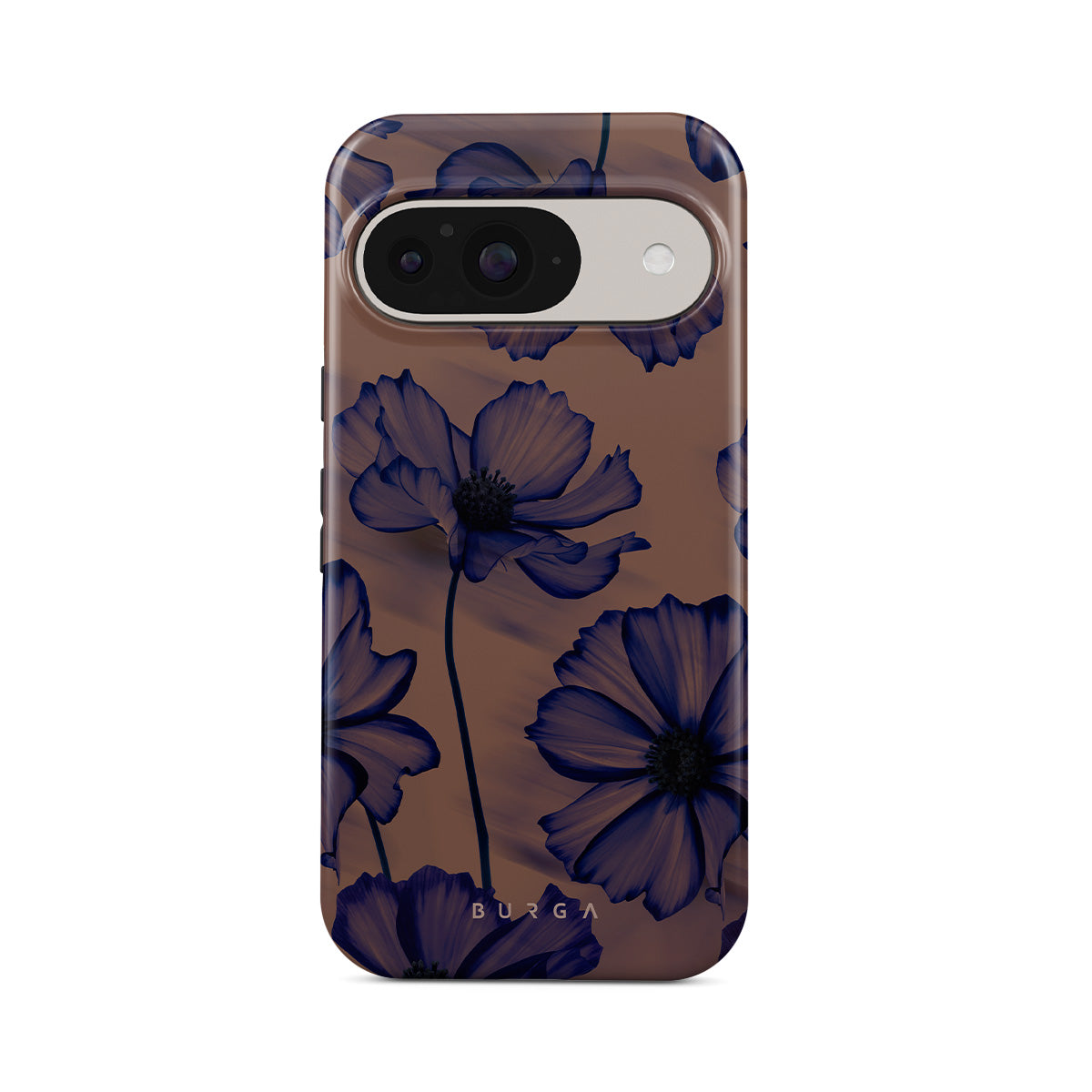 Discover our Velvet Night design. On a soft nude backdrop, blue poppies dance in the untamed rhythm of the wind. A blend of night's peace and daring energy, this Google Pixel 10 Pro XL phone case is perfect for those who dream big and seek adventure.