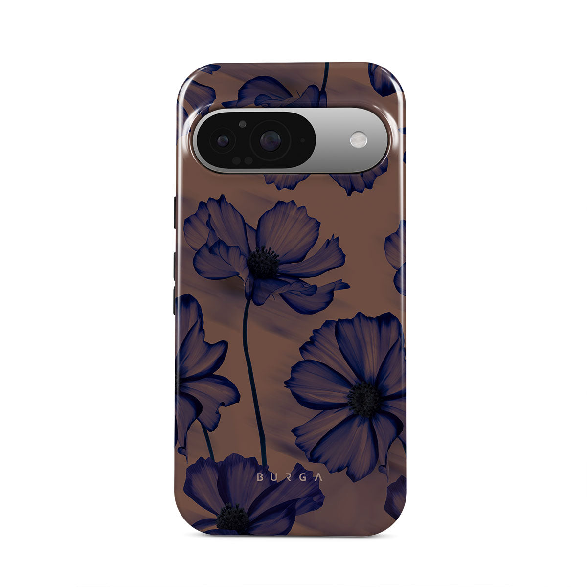Discover our Velvet Night design. On a soft nude backdrop, blue poppies dance in the untamed rhythm of the wind. A blend of night's peace and daring energy, this Google Pixel 9 phone case is perfect for those who dream big and seek adventure.