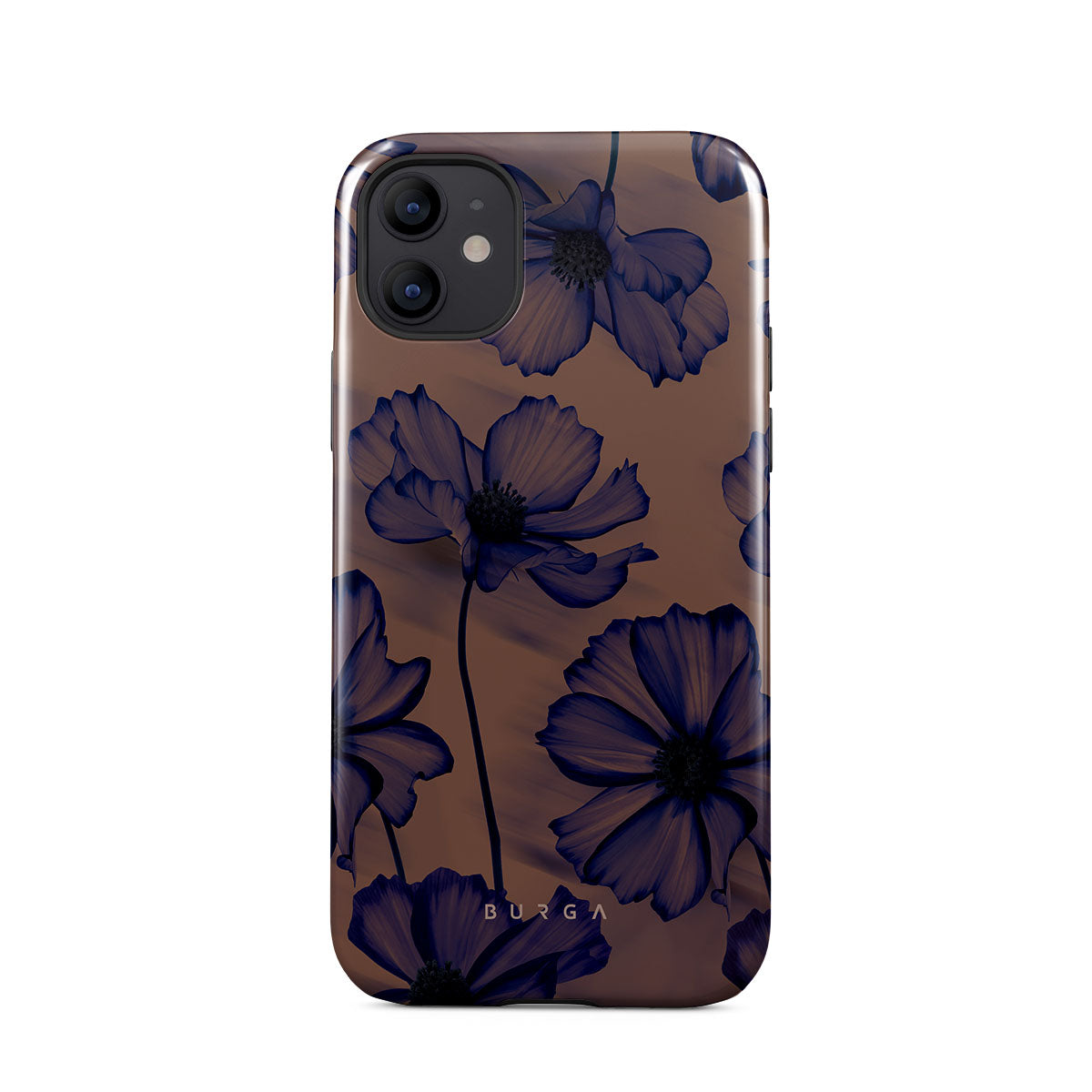 Discover our Velvet Night design. On a soft nude backdrop, blue poppies dance in the untamed rhythm of the wind. A blend of night's peace and daring energy, this iPhone 12 phone case is perfect for those who dream big and seek adventure.