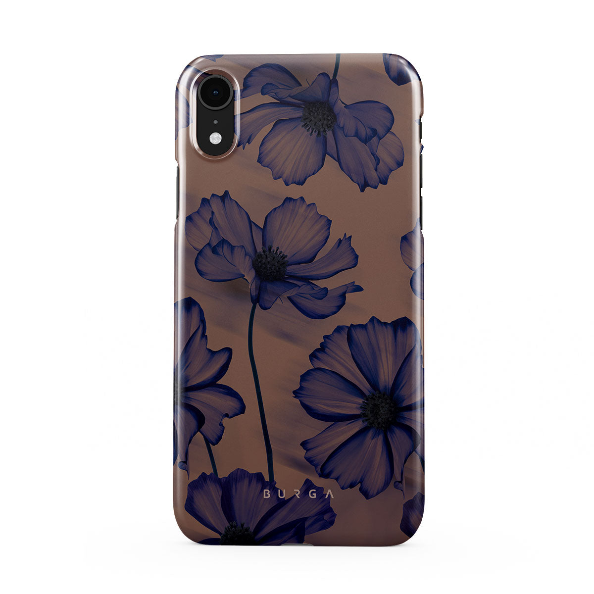 Discover our Velvet Night design. On a soft nude backdrop, blue poppies dance in the untamed rhythm of the wind. A blend of night's peace and daring energy, this iPhone XR phone case is perfect for those who dream big and seek adventure.