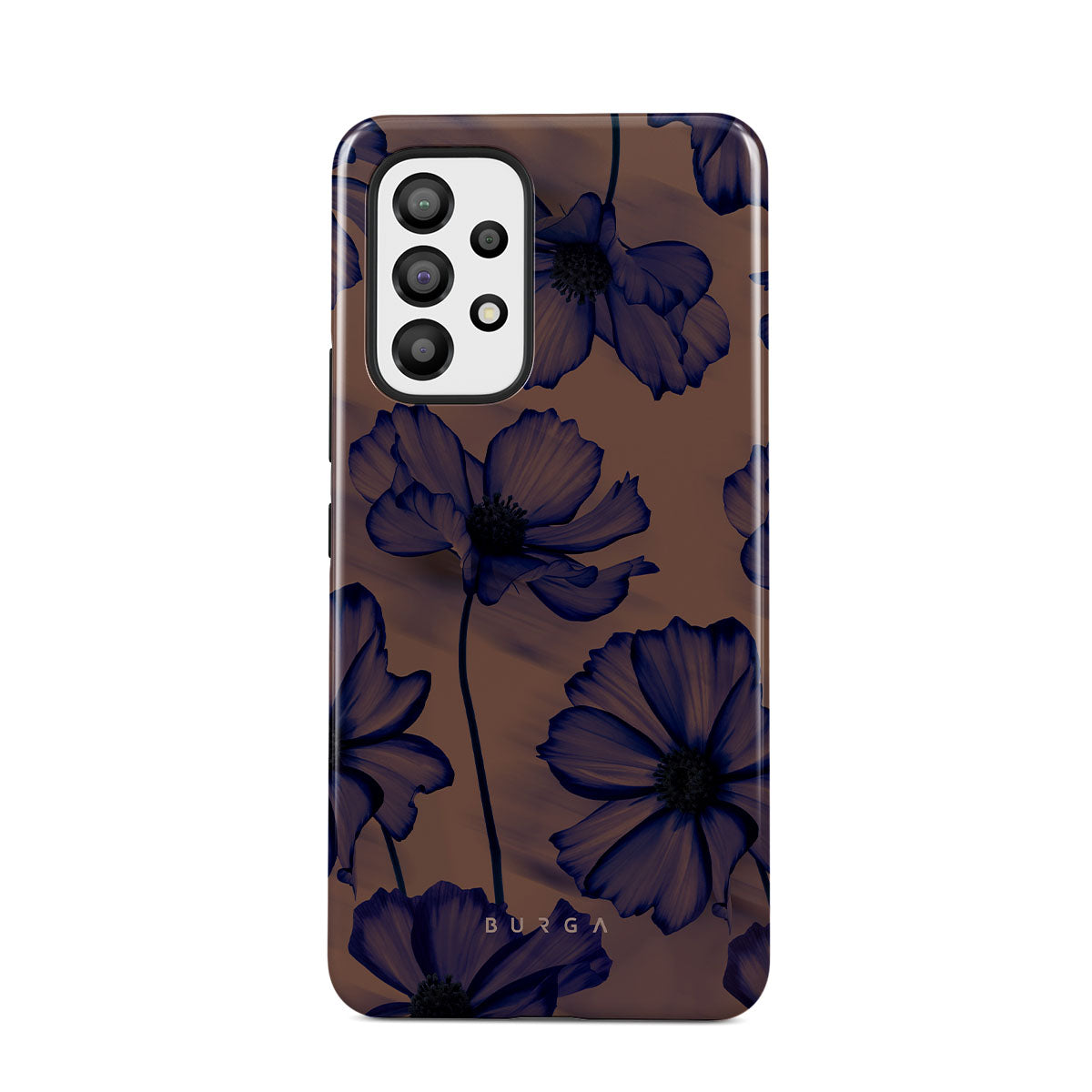 Discover our Velvet Night design. On a soft nude backdrop, blue poppies dance in the untamed rhythm of the wind. A blend of night's peace and daring energy, this Samsung Galaxy A53 phone case is perfect for those who dream big and seek adventure.