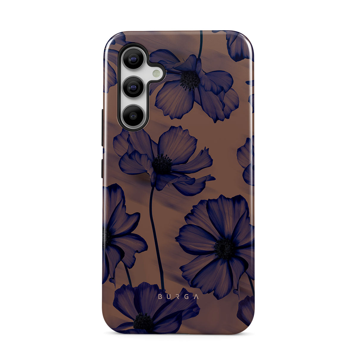 Discover our Velvet Night design. On a soft nude backdrop, blue poppies dance in the untamed rhythm of the wind. A blend of night's peace and daring energy, this Samsung Galaxy A54 phone case is perfect for those who dream big and seek adventure.