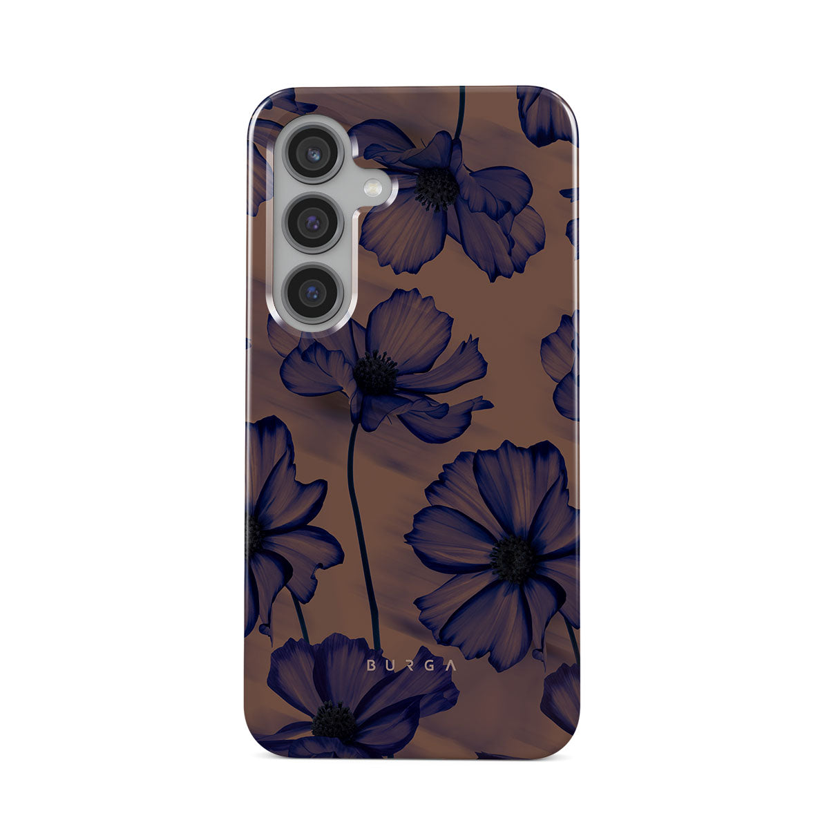 Discover our Velvet Night design. On a soft nude backdrop, blue poppies dance in the untamed rhythm of the wind. A blend of night's peace and daring energy, this Samsung Galaxy S24 phone case is perfect for those who dream big and seek adventure.