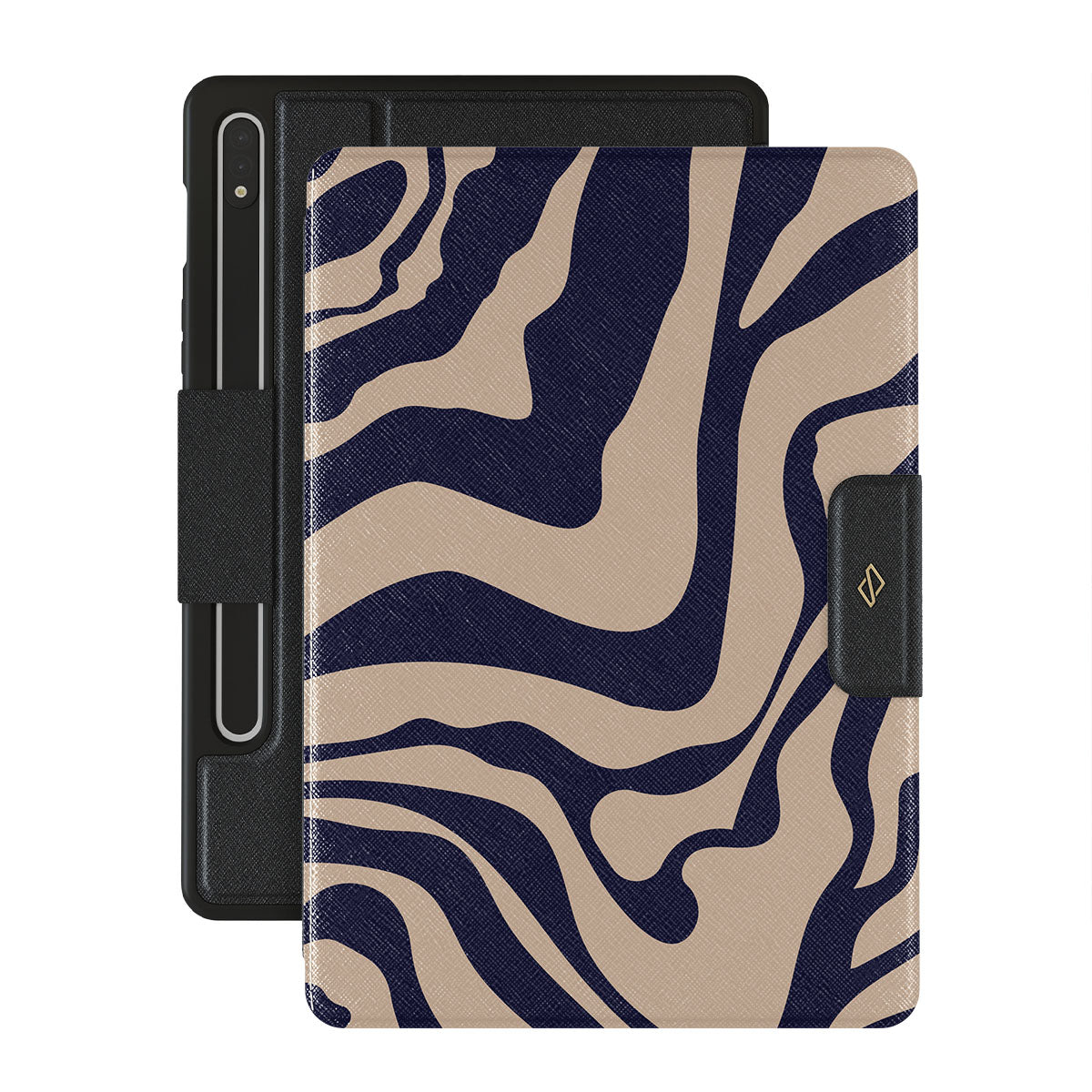 The zebra pattern in our Vigilant Samsung Galaxy Tab S8+/S7+/S7 FE folio case was reimagined into the perfect fierceness and runway feel combination, making your Galaxy Tab the ideal accessory for the workday and for happy hours after, keeping it safe and very fashionable, all at the same time
