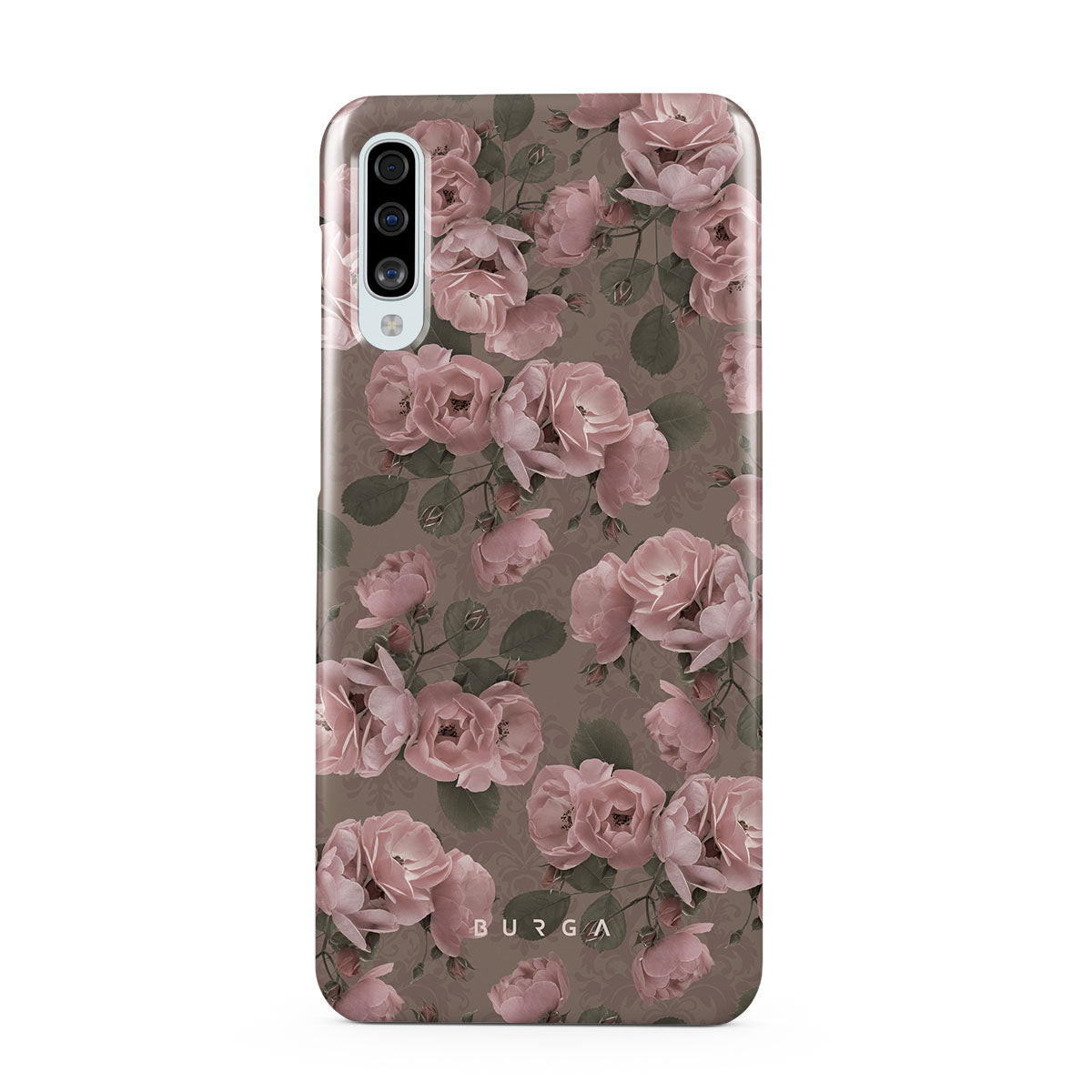 Blush, blooming roses transport you to an era of silent film stars and secret gardens. Our sophisticated Vintage Glamour Samsung Galaxy A50 phone case design is perfect for the romantic at heart. It's for those who speak in glances and sighs and find comfort in the nostalgic whispers of floral romance.