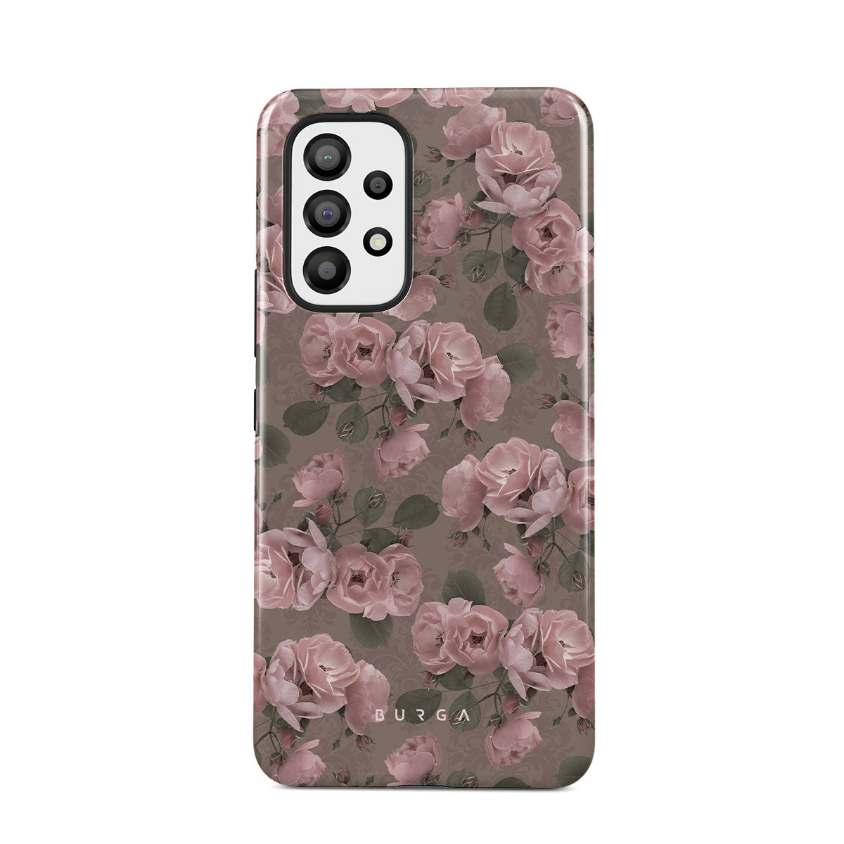 Blush, blooming roses transport you to an era of silent film stars and secret gardens. Our sophisticated Vintage Glamour Samsung Galaxy A53 phone case design is perfect for the romantic at heart. It's for those who speak in glances and sighs and find comfort in the nostalgic whispers of floral romance.