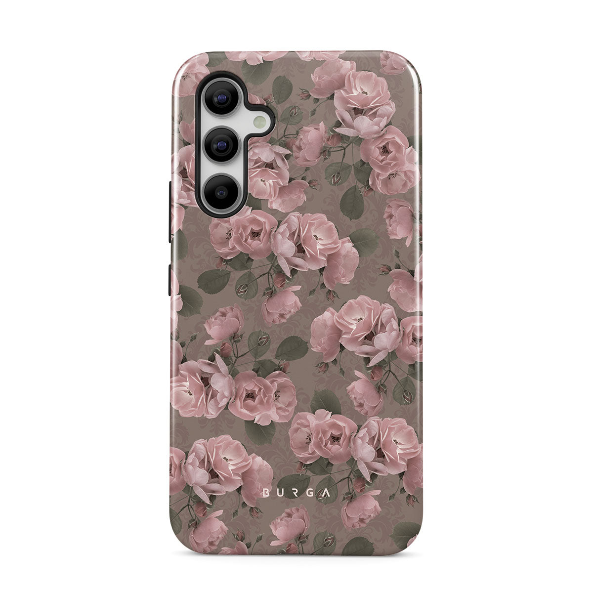 Blush, blooming roses transport you to an era of silent film stars and secret gardens. Our sophisticated Vintage Glamour Samsung Galaxy A54 phone case design is perfect for the romantic at heart. It's for those who speak in glances and sighs and find comfort in the nostalgic whispers of floral romance.