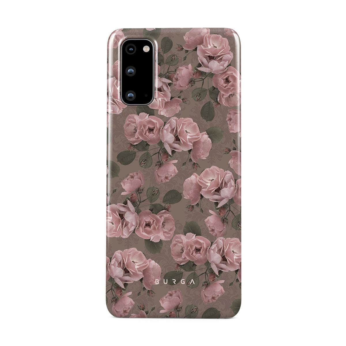 Blush, blooming roses transport you to an era of silent film stars and secret gardens. Our sophisticated Vintage Glamour Samsung Galaxy S20 4G / 5G phone case design is perfect for the romantic at heart. It's for those who speak in glances and sighs and find comfort in the nostalgic whispers of floral romance.
