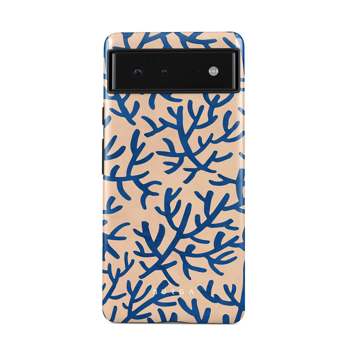 Everyone needs some vitamins and relaxing time by the sea, right? Yes! And our word-play-inspired Vitamin Sea Google Pixel 6 phone case design is the perfect companion you must bring to the beach. Keep your phone protected in a case featuring a geometrical tree-like blue pattern. The case will surely catch an eye, and the selfies will look even more popping!
