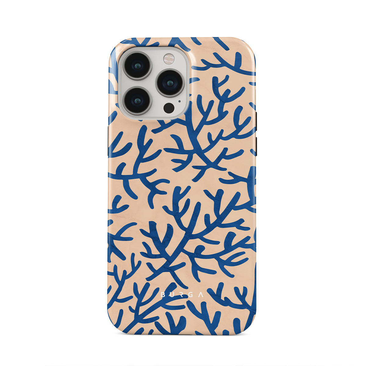 Everyone needs some vitamins and relaxing time by the sea, right? Yes! And our word-play-inspired Vitamin Sea iPhone 13 Pro phone case design is the perfect companion you must bring to the beach. Keep your phone protected in a case featuring a geometrical tree-like blue pattern. The case will surely catch an eye, and the selfies will look even more popping!